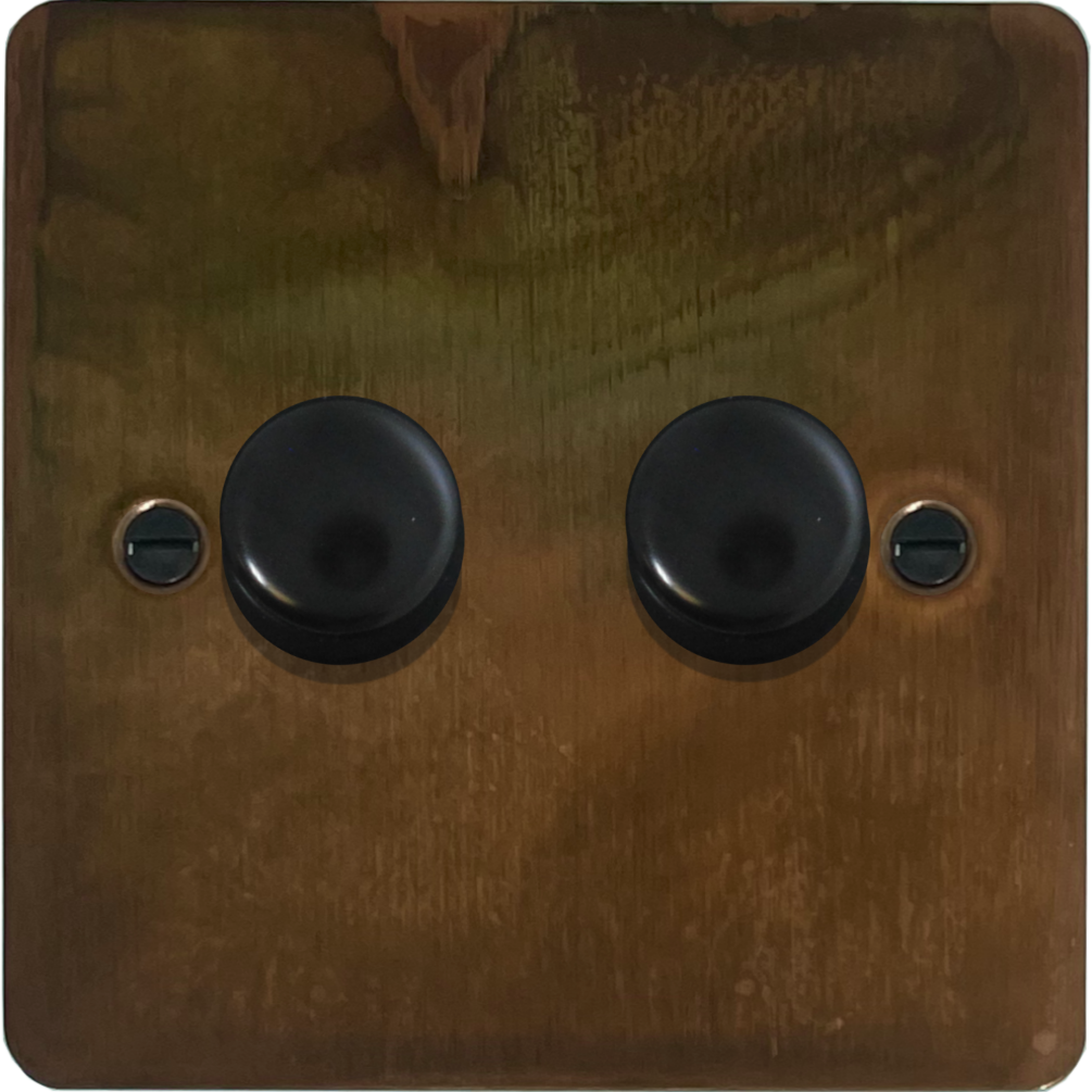 Flat Tarnished Copper LED Dimmer (2 Gang)