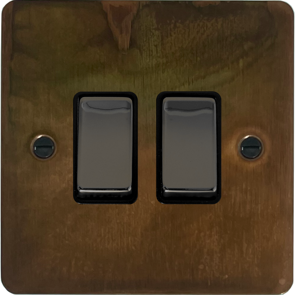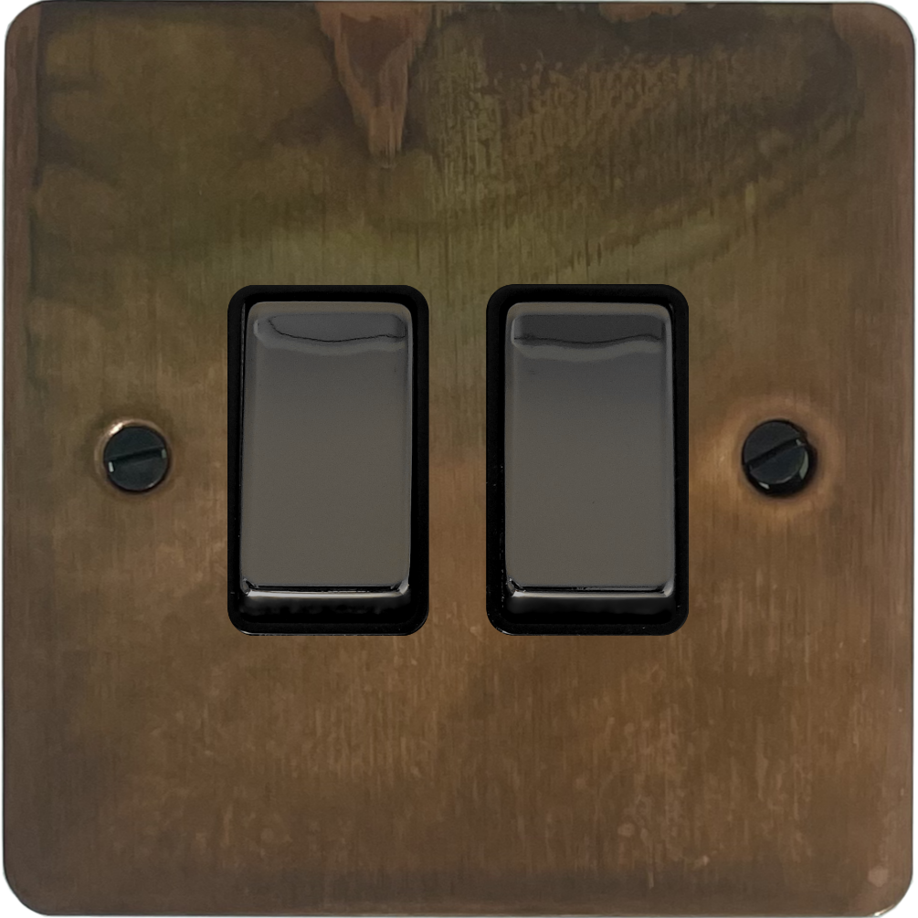 Flat Tarnished Copper Light Switch (2 Gang/Black Nickel Switch) - G+H FTC302