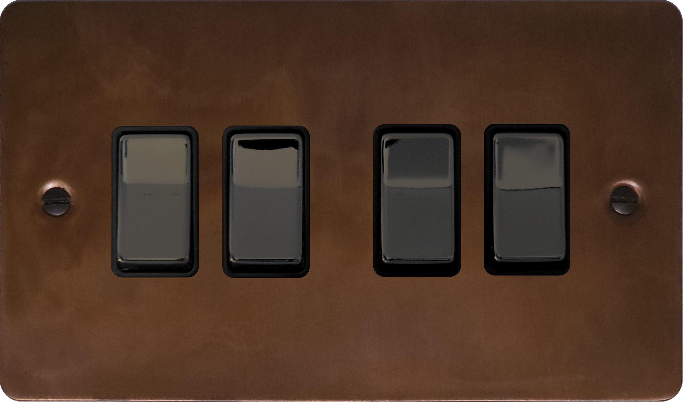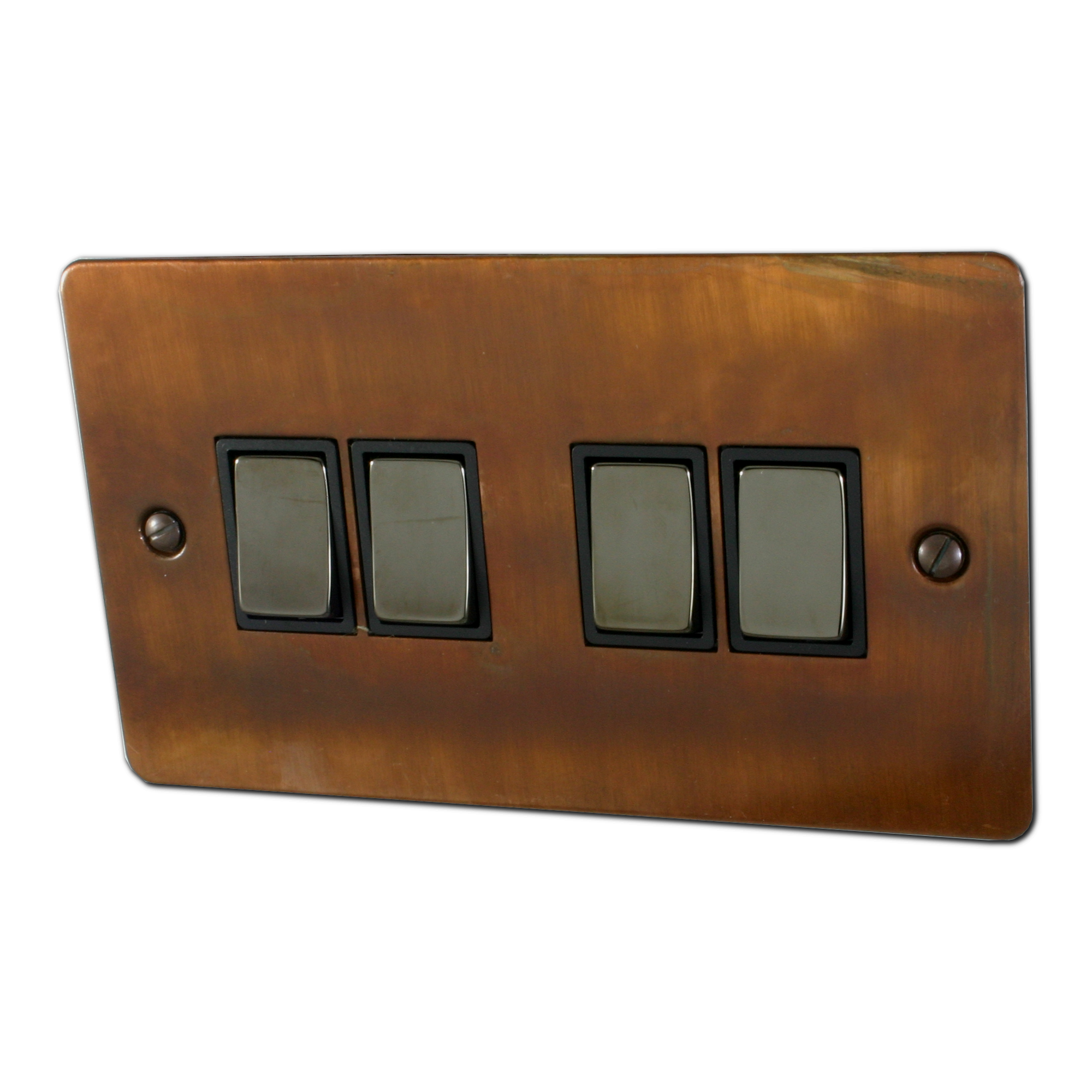 Flat Tarnished Copper Light Switch (4 Gang/Black Nickel Switch) - G+H FTC304