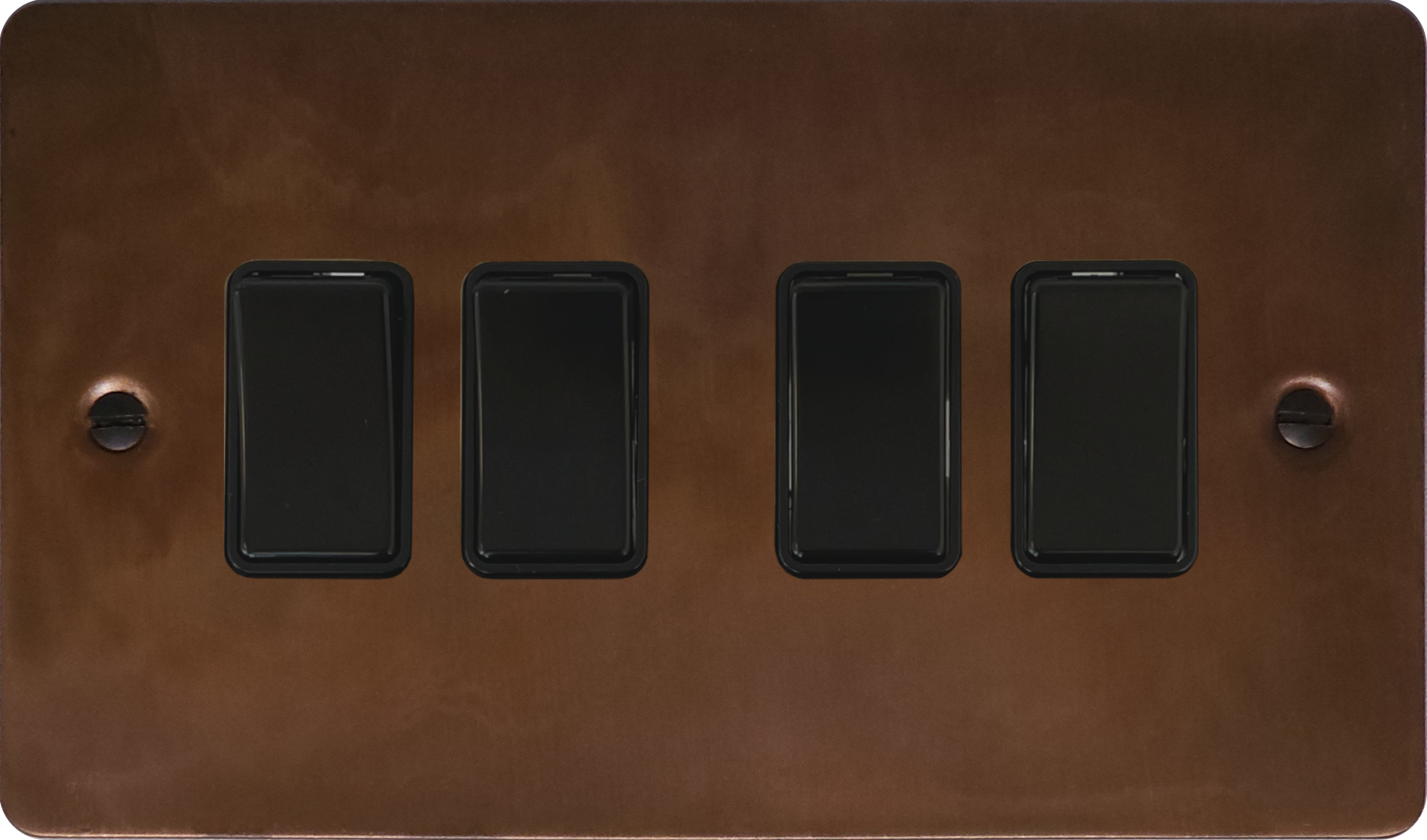 Flat Tarnished Copper Light Switch (4 Gang/Black Switch) - G+H FTC4B