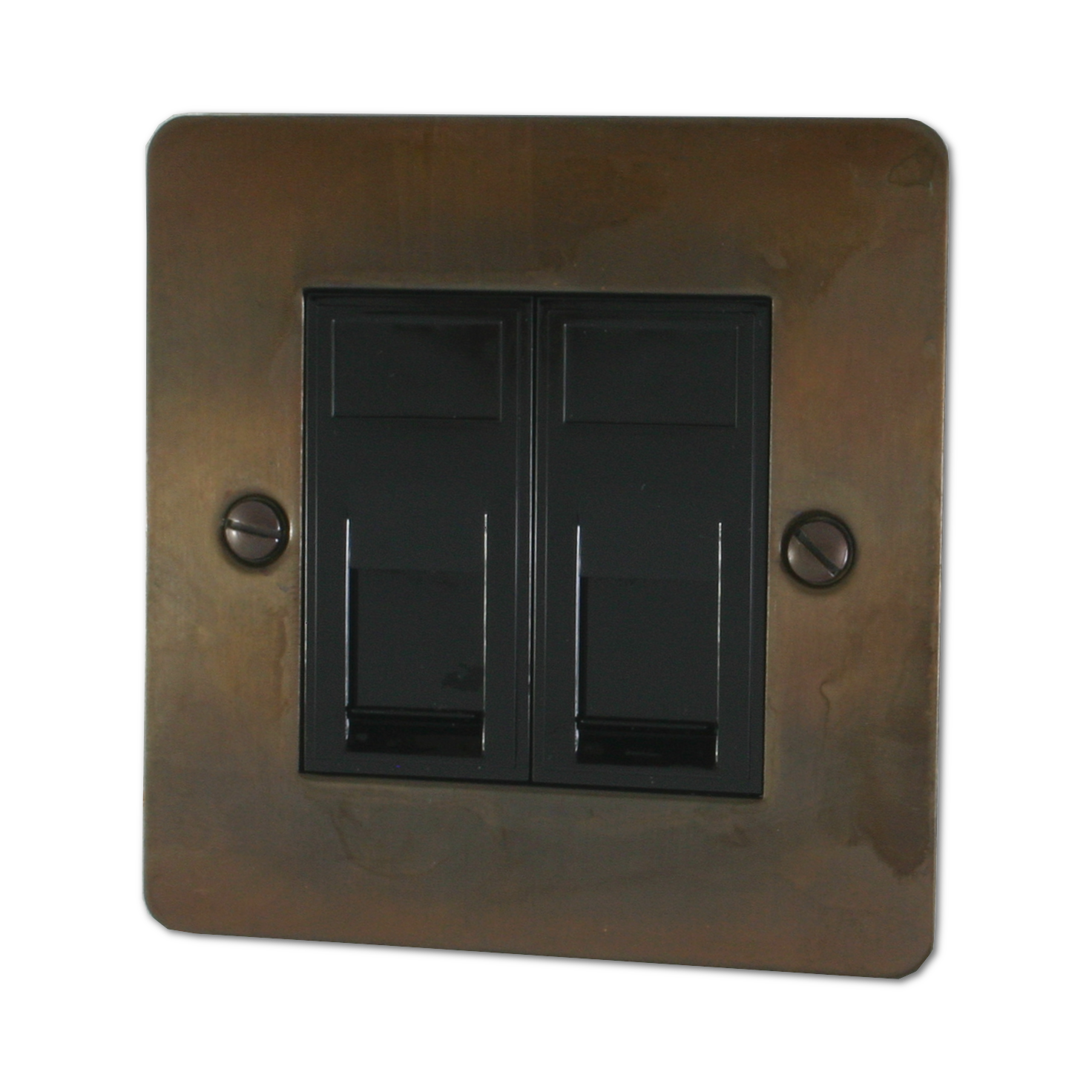 Flat Tarnished Copper RJ45 Socket (2 Gang/Black Insert) - G+H FTC62B