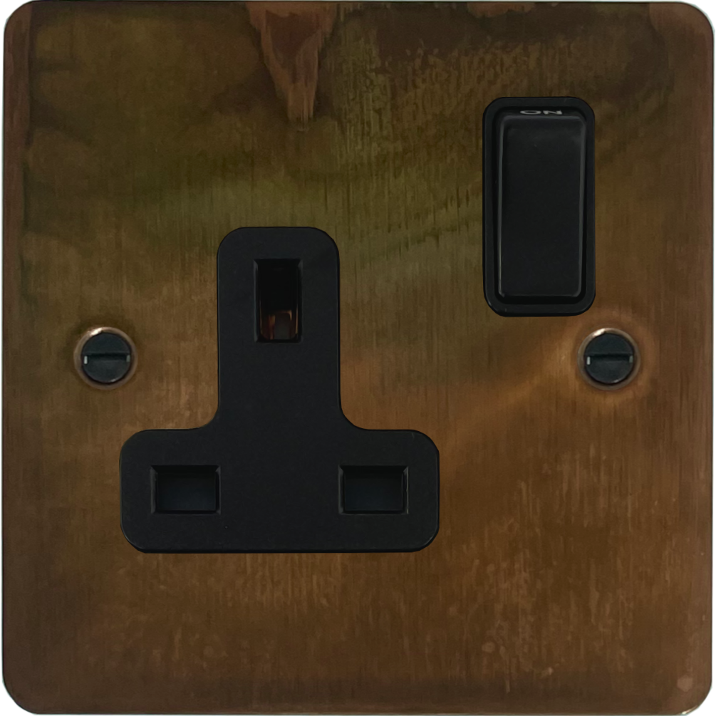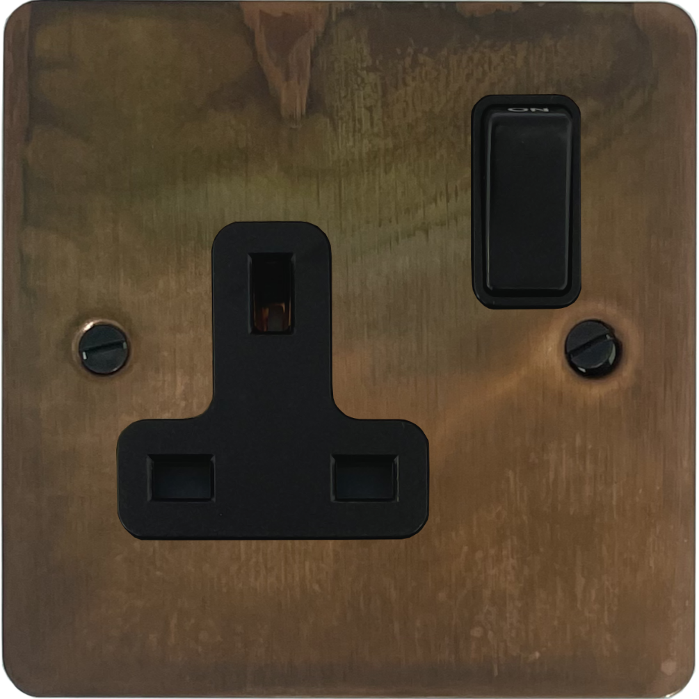 Flat Tarnished Copper Single Socket (Black Switch) - G+H FTC9B