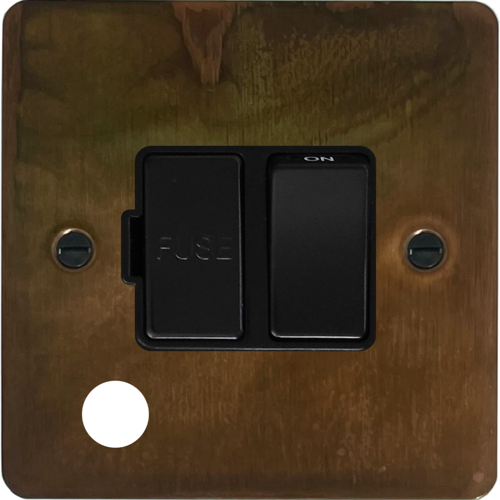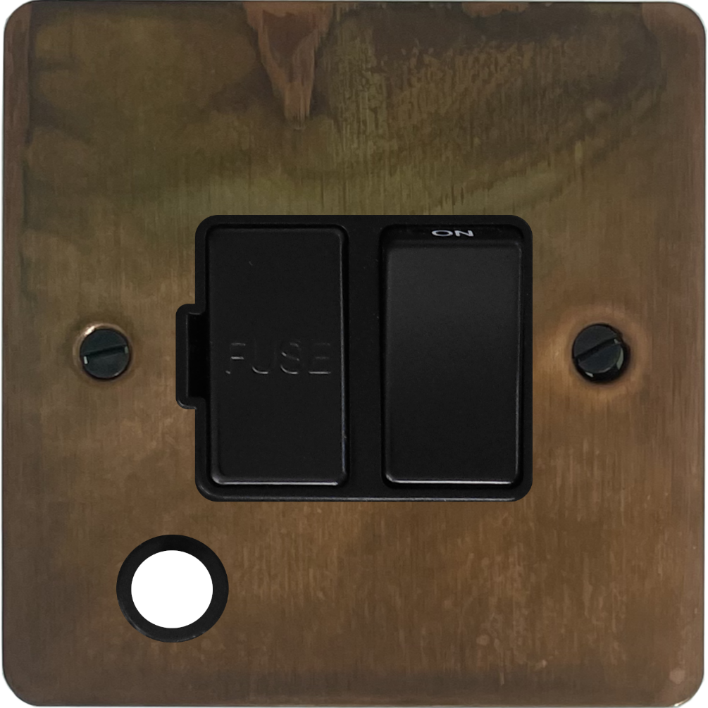 Flat Tarnished Copper Switched Fused Spur with Flex Outlet (Black Switch) - G+H FTC56B