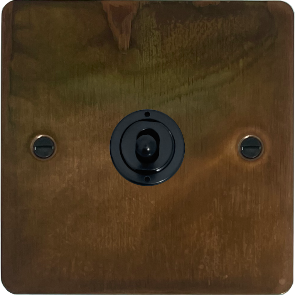 Flat Tarnished Copper Toggle Switch (1 Gang/Matt Black Toggle) - G+H FTC381-FBK