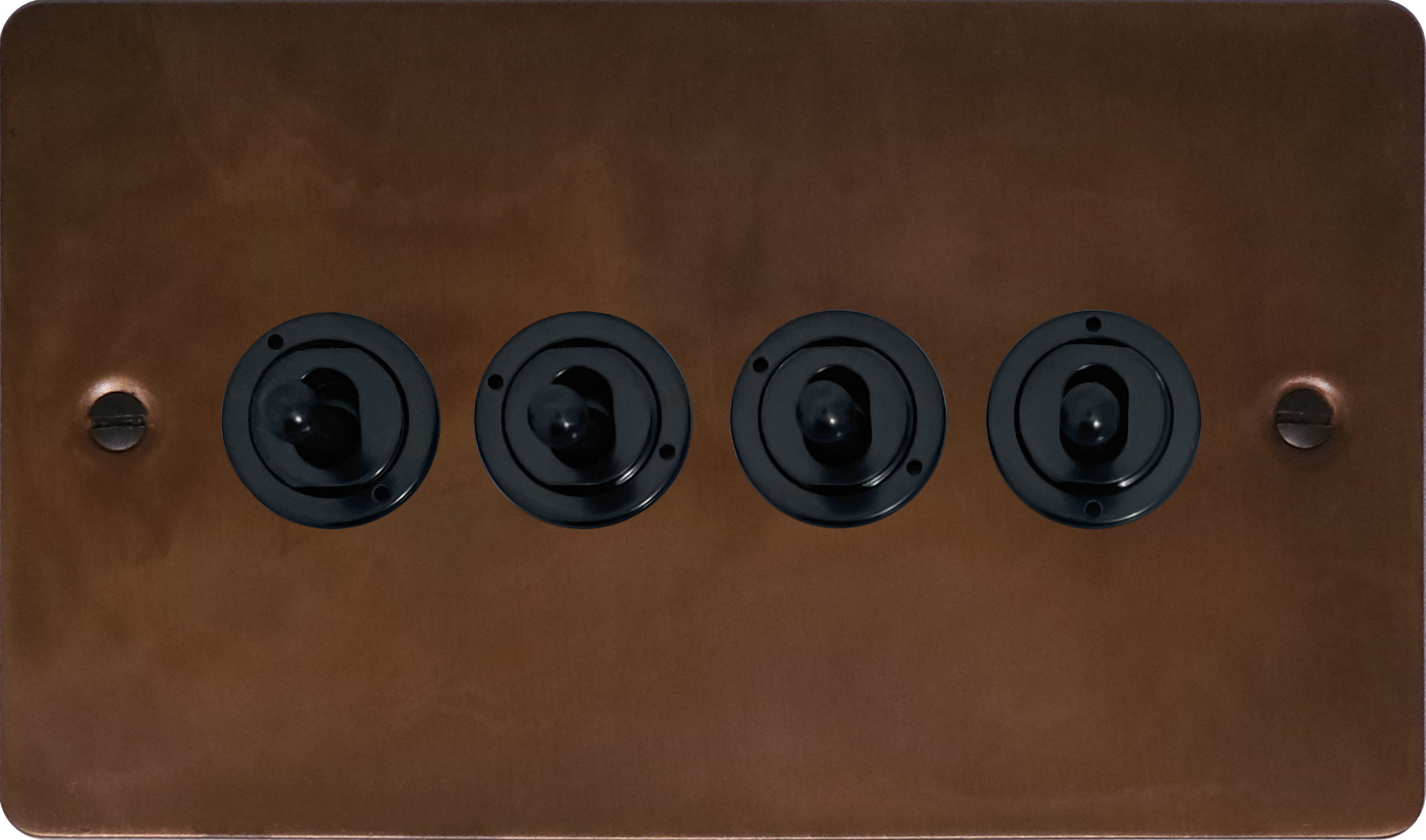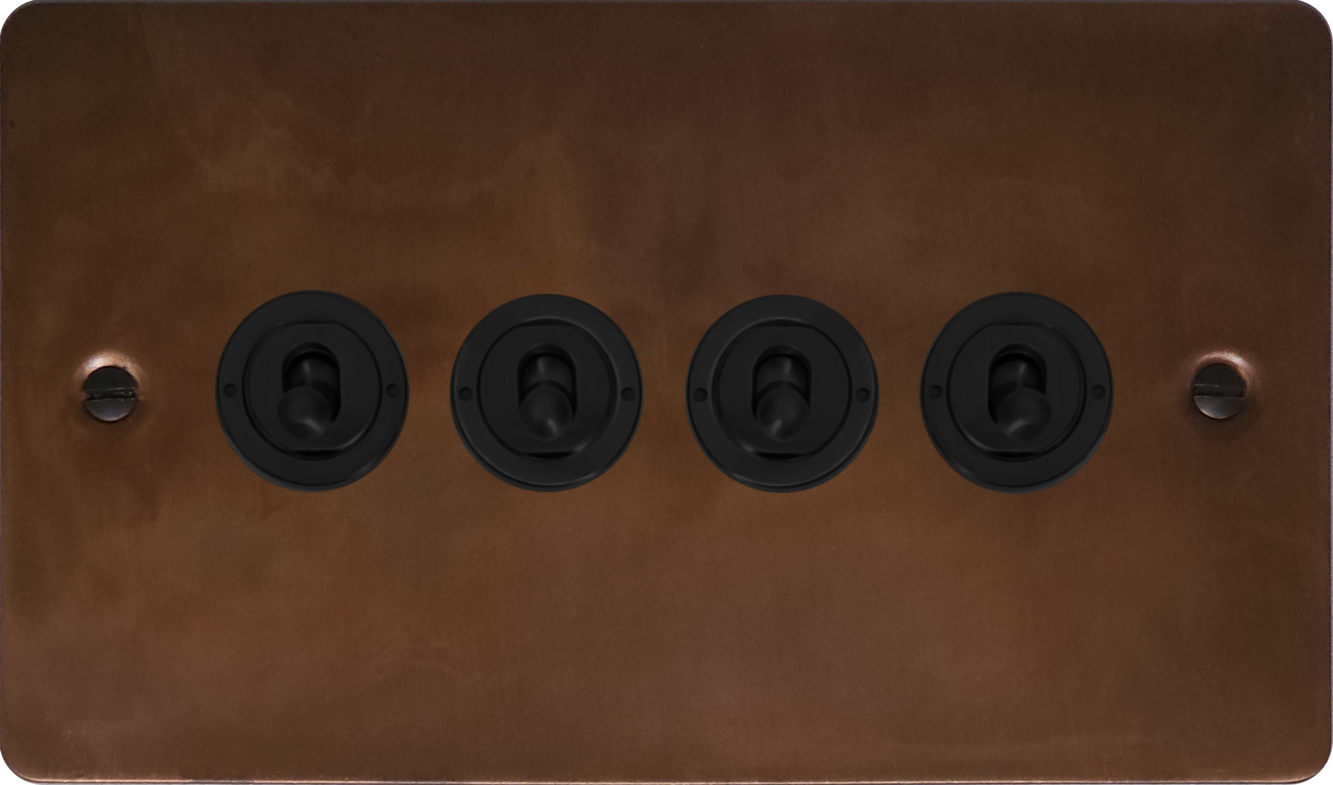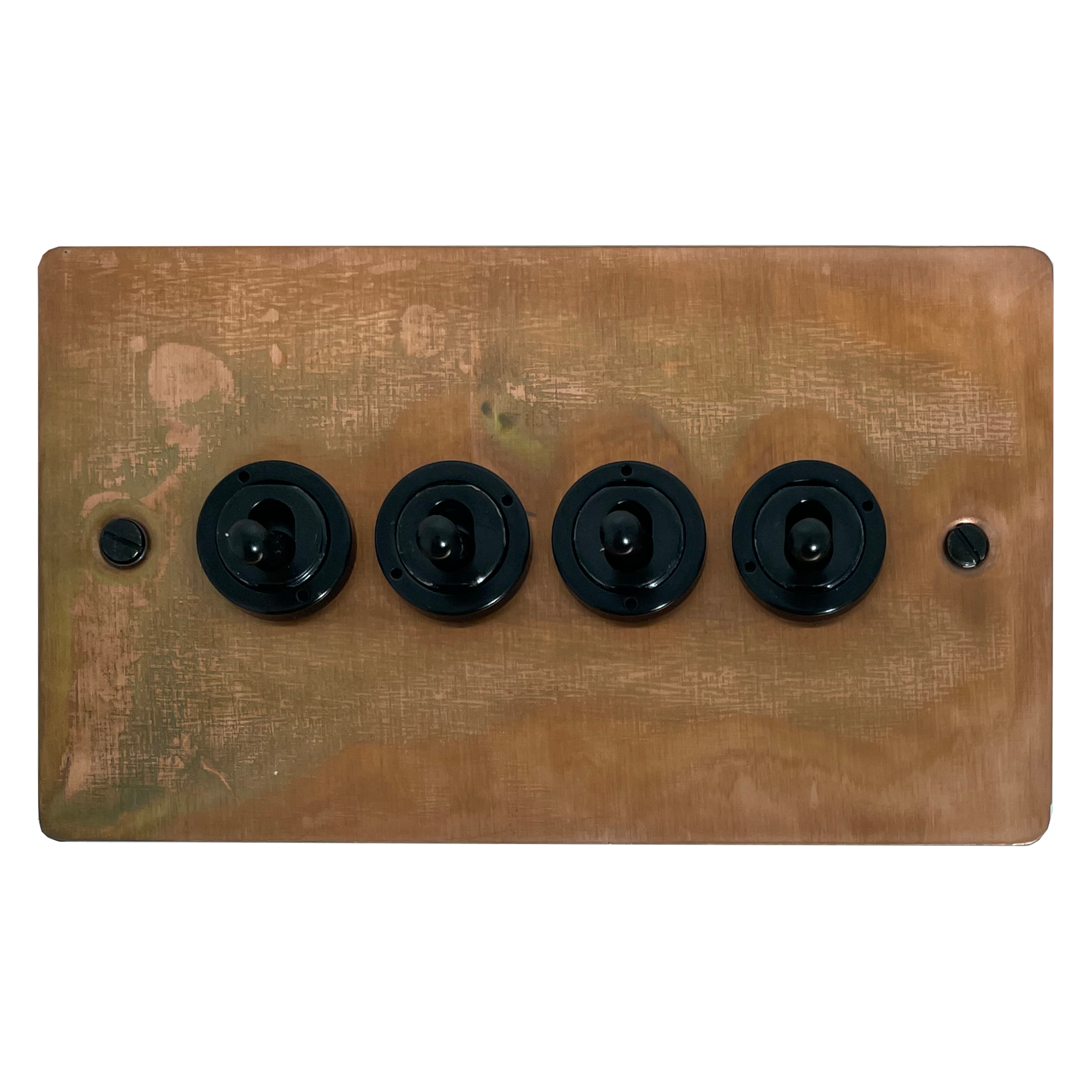 Flat Tarnished Copper Toggle Switch (4 Gang/Matt Black Toggles) - G+H FTC384-FBK
