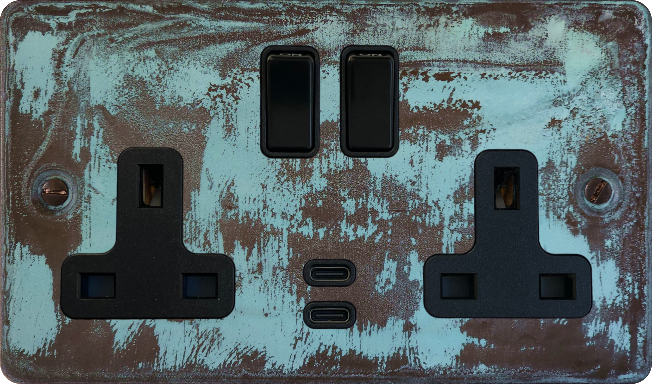 Flat Verdigris 2 Gang Socket with USBC