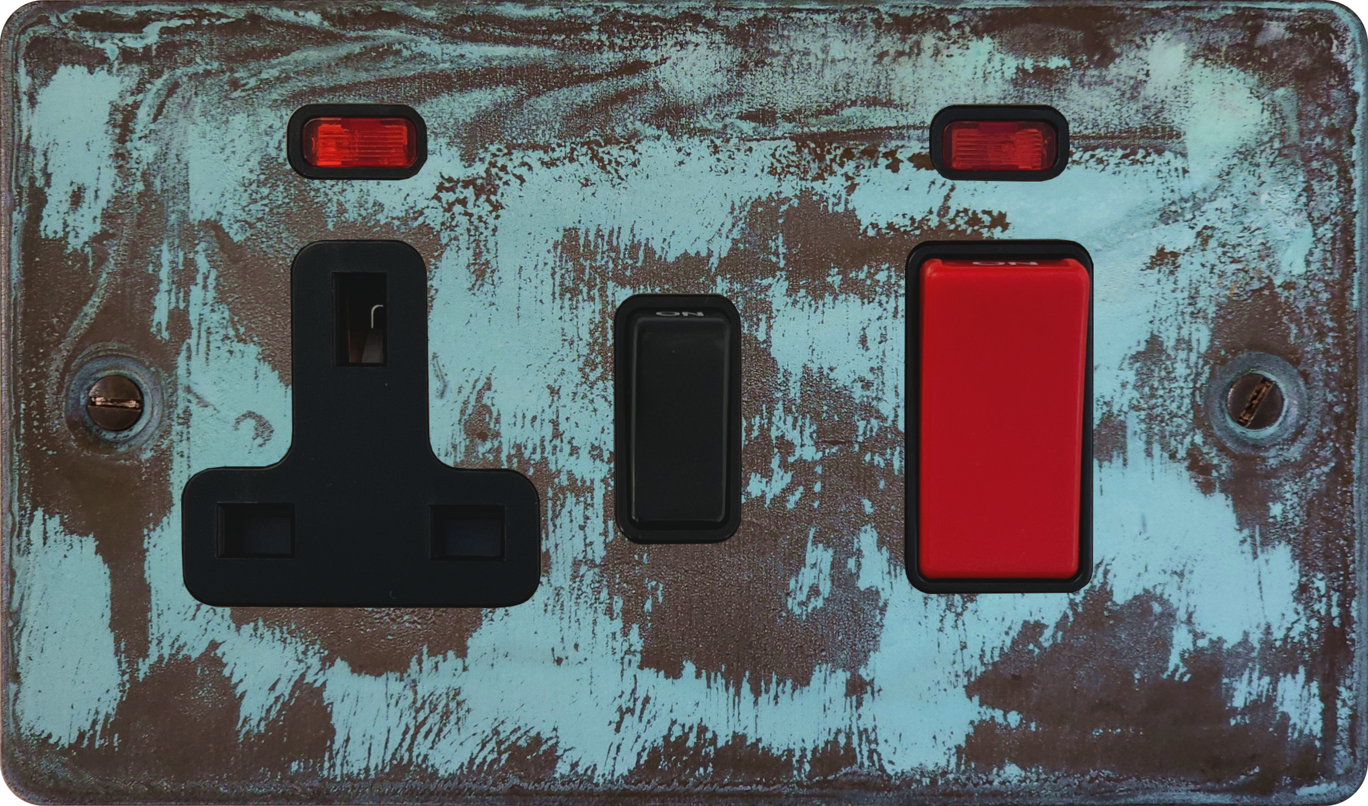 Flat Verdigris Cooker Switch with Socket (45 Amp/Double Plate)