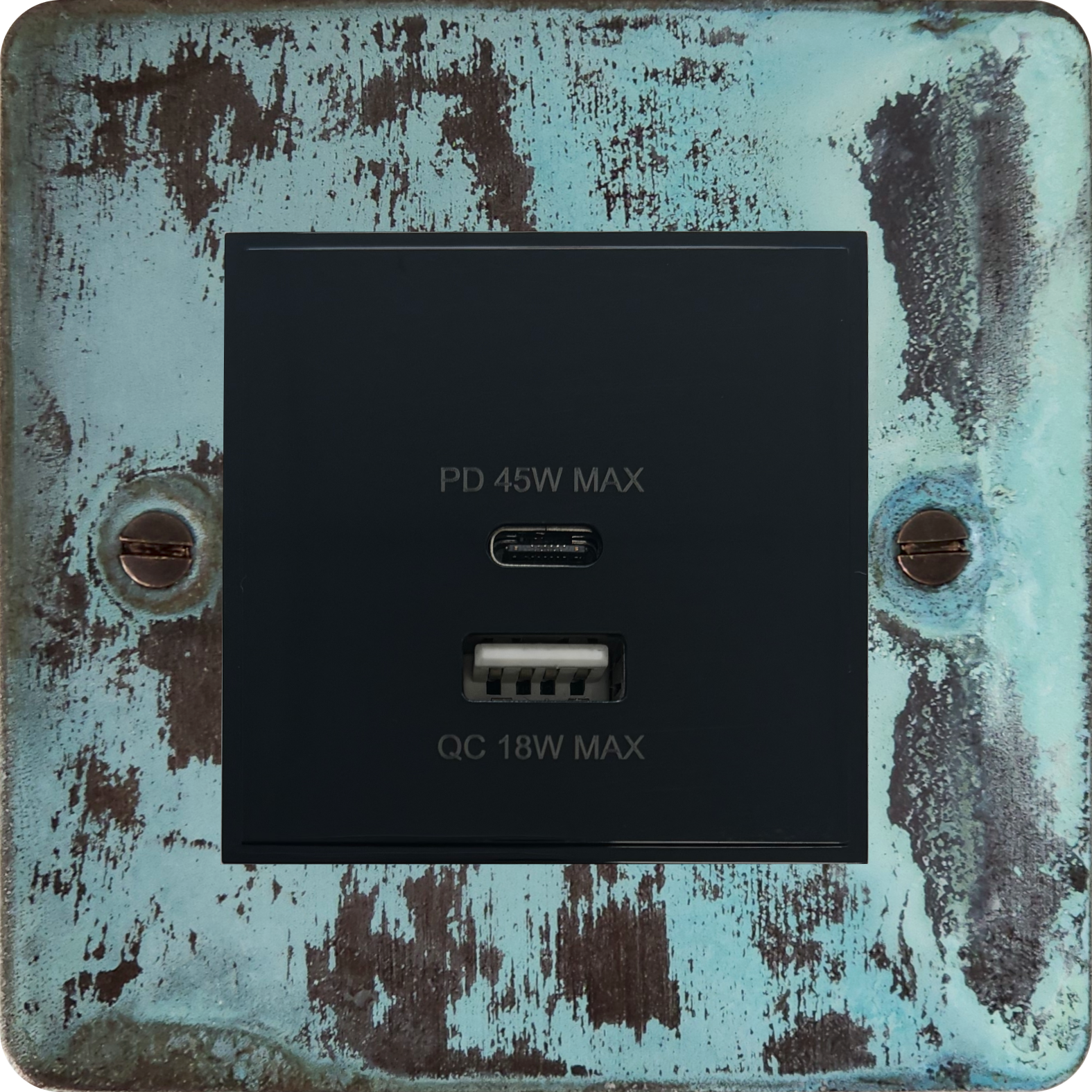 Flat Verdigris (Dual USB A + C Quick Charge) (1 Gang/Black Insert) - G+H FV43B