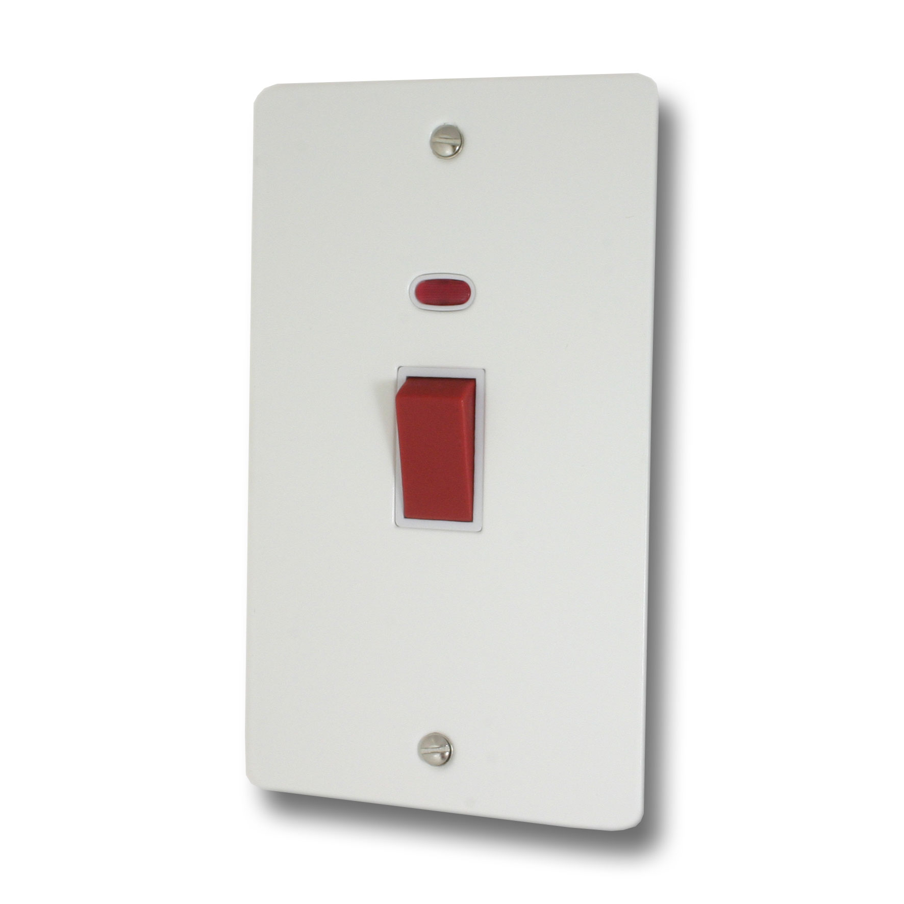 Flat White Cooker Switch (45 Amp/Double Plate/White Surround) - G+H _FW28