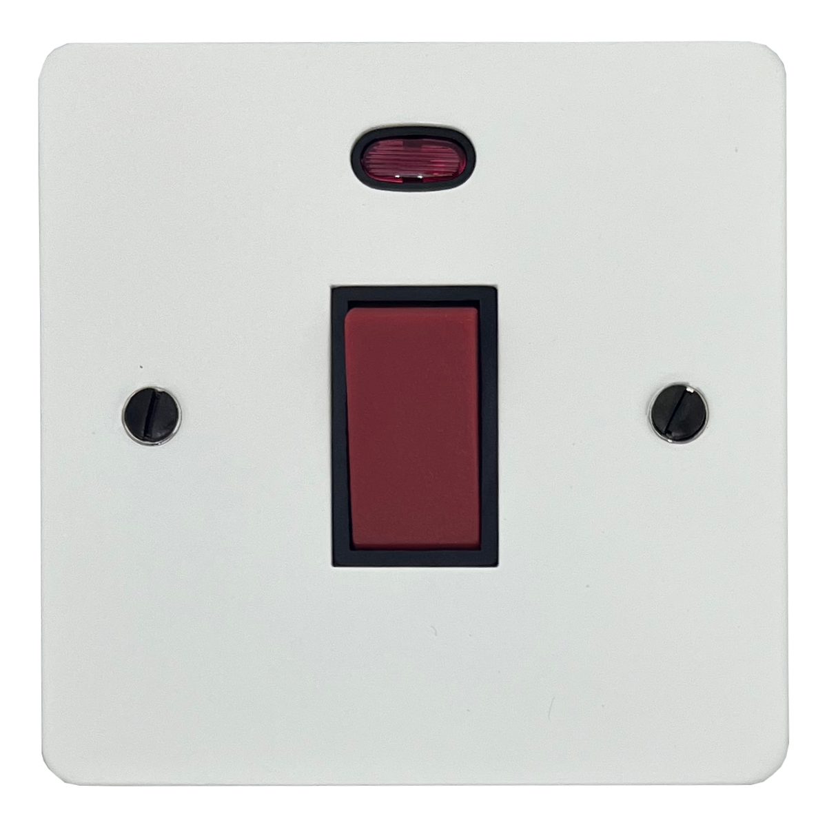 Flat White Cooker Switch (45 Amp/Single Plate/Black Insert) - G+H FW46B