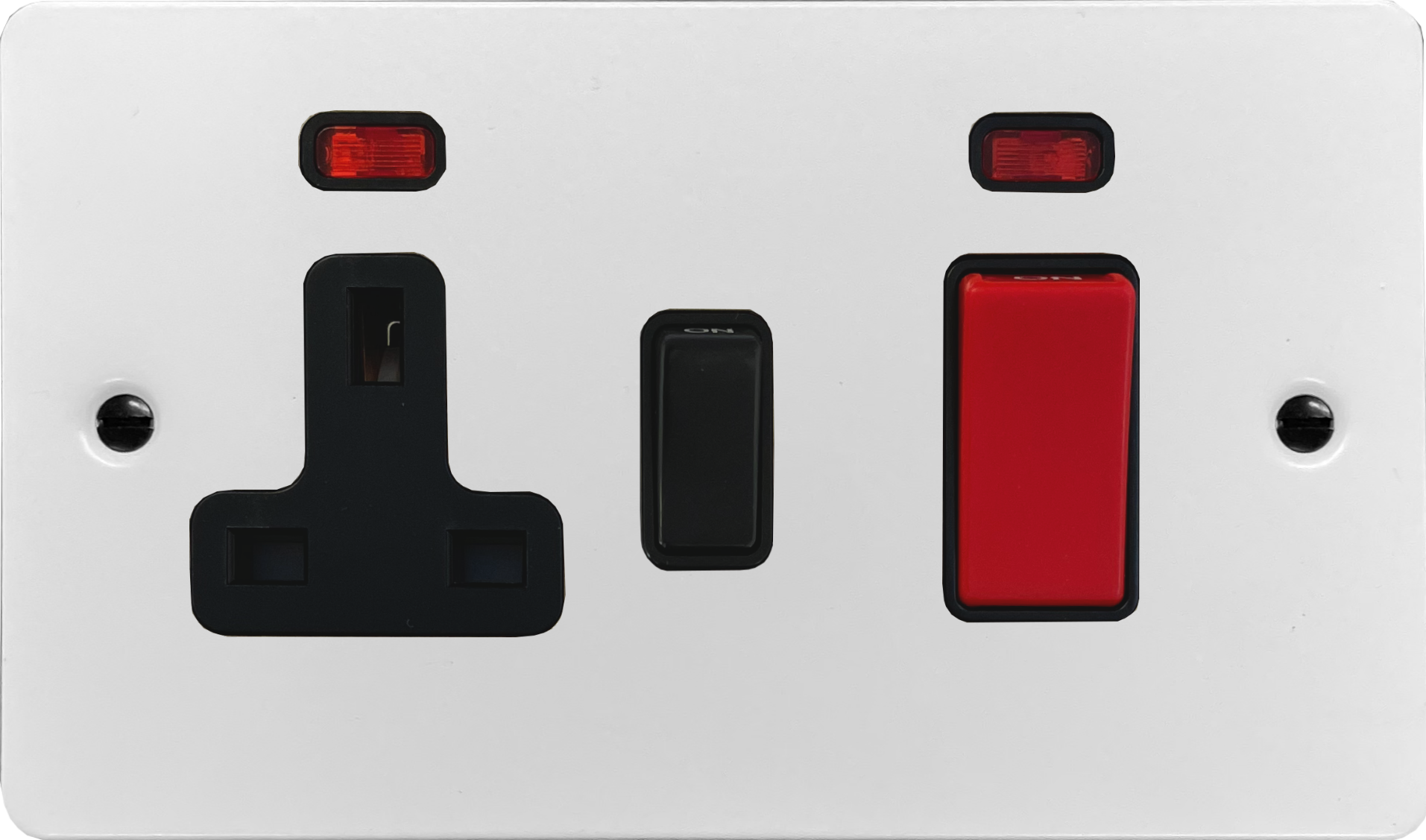 Flat White Cooker Switch with Socket (45 Amp/Black Insert) - G+H _FW29