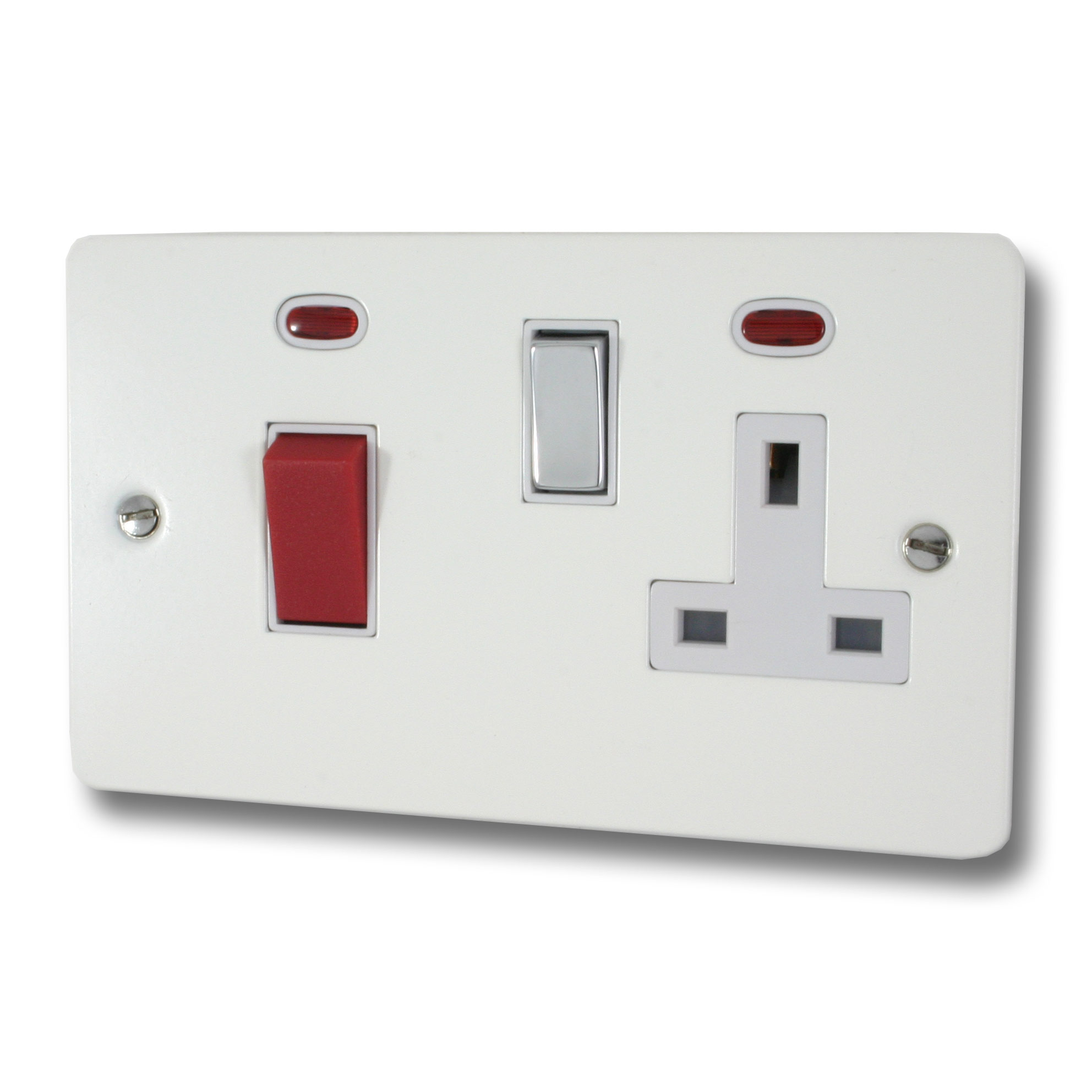 Flat White Cooker Switch with Socket (45 Amp/Chrome Switch) - G+H FW229-PC