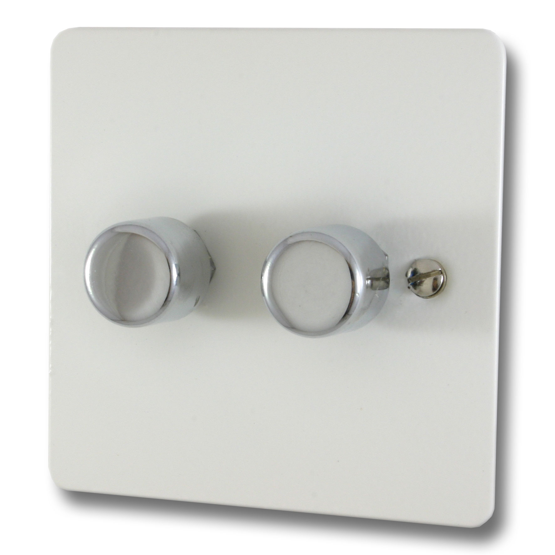 Flat White Dimmer (2 Gang/400W/Chrome Caps)