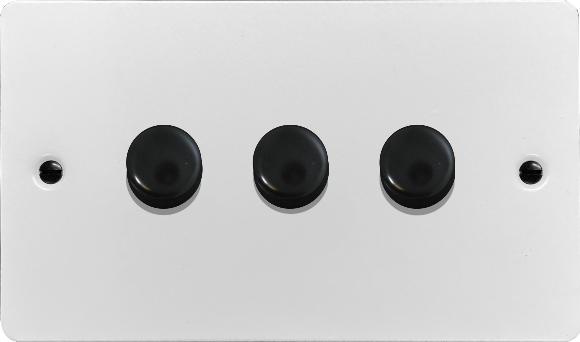 Flat White Dimmer (3 Gang/400W/Black Caps) - G+H FW13-BK