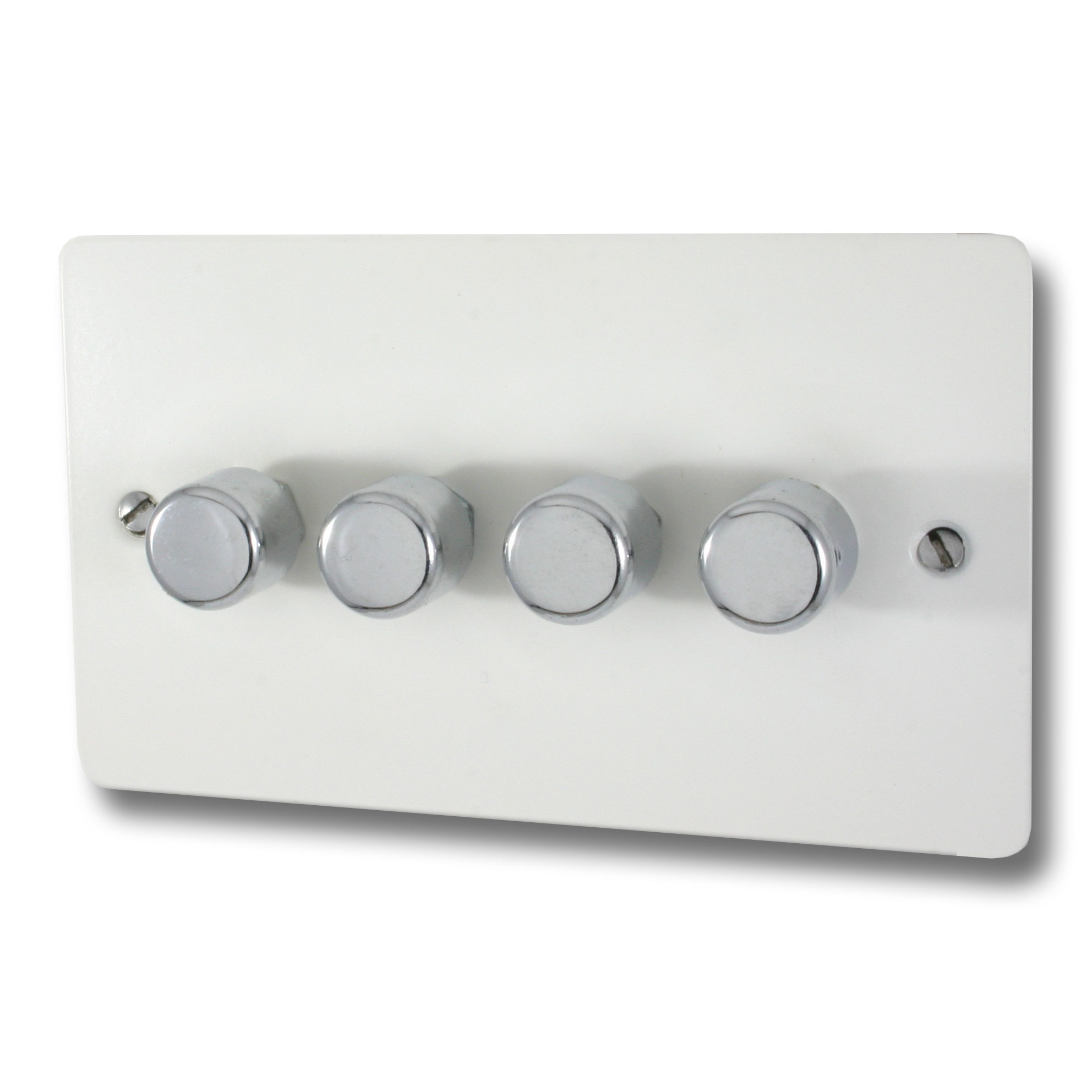 Flat White Dimmer (4 Gang/400W/ Chrome Caps)