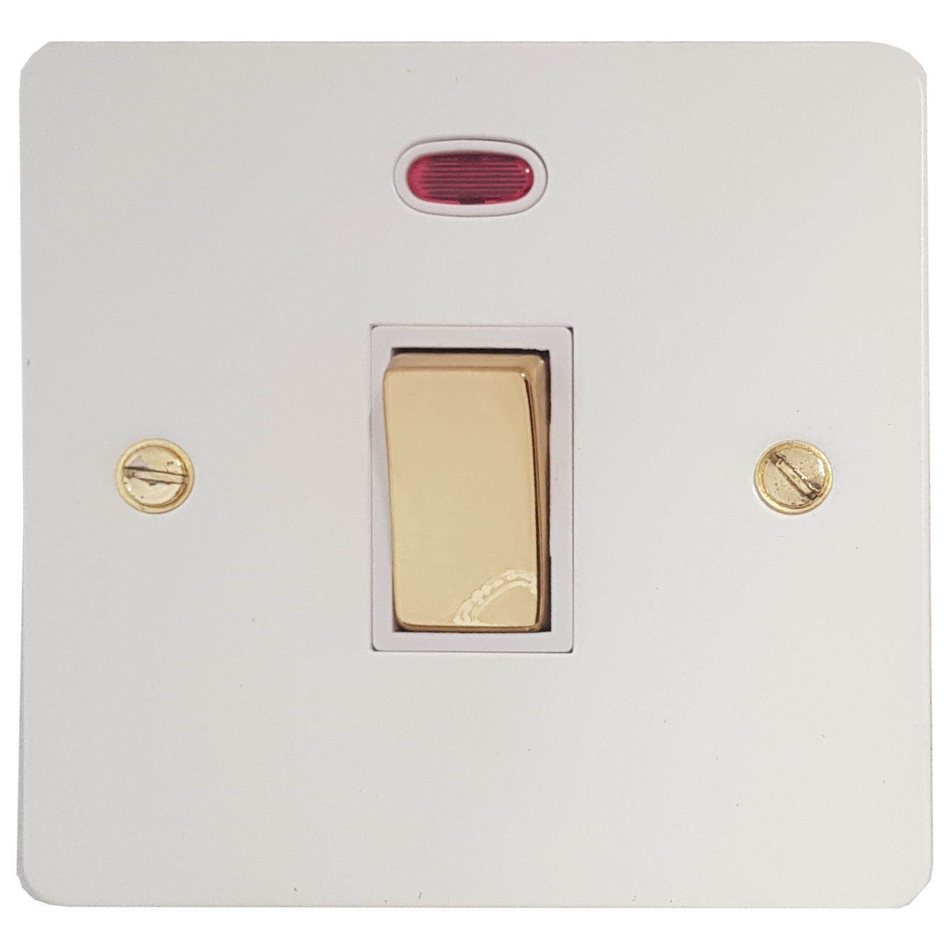 Flat White DP Switch (with Neon/Polished Brass Switch) - G+H FW226-PB