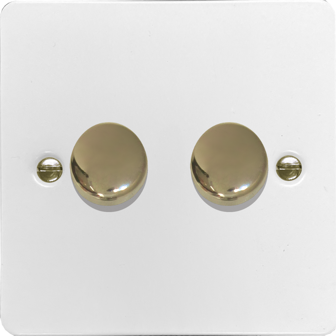 Flat White LED Dimmer (2 Gang/Polished Brass Caps) - G+H FW522-PB