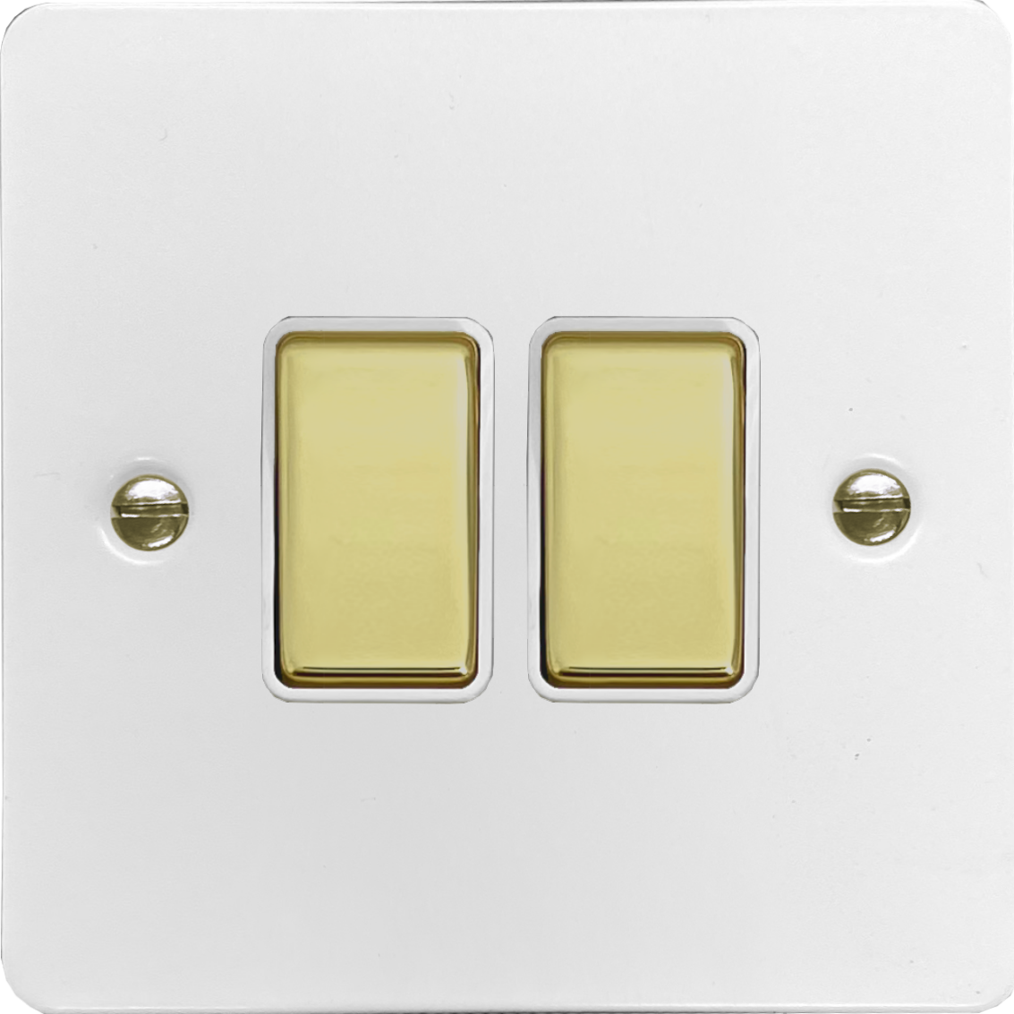 Flat White Light Switch (2 Gang/Polished Brass Switches) - G+H _FW2