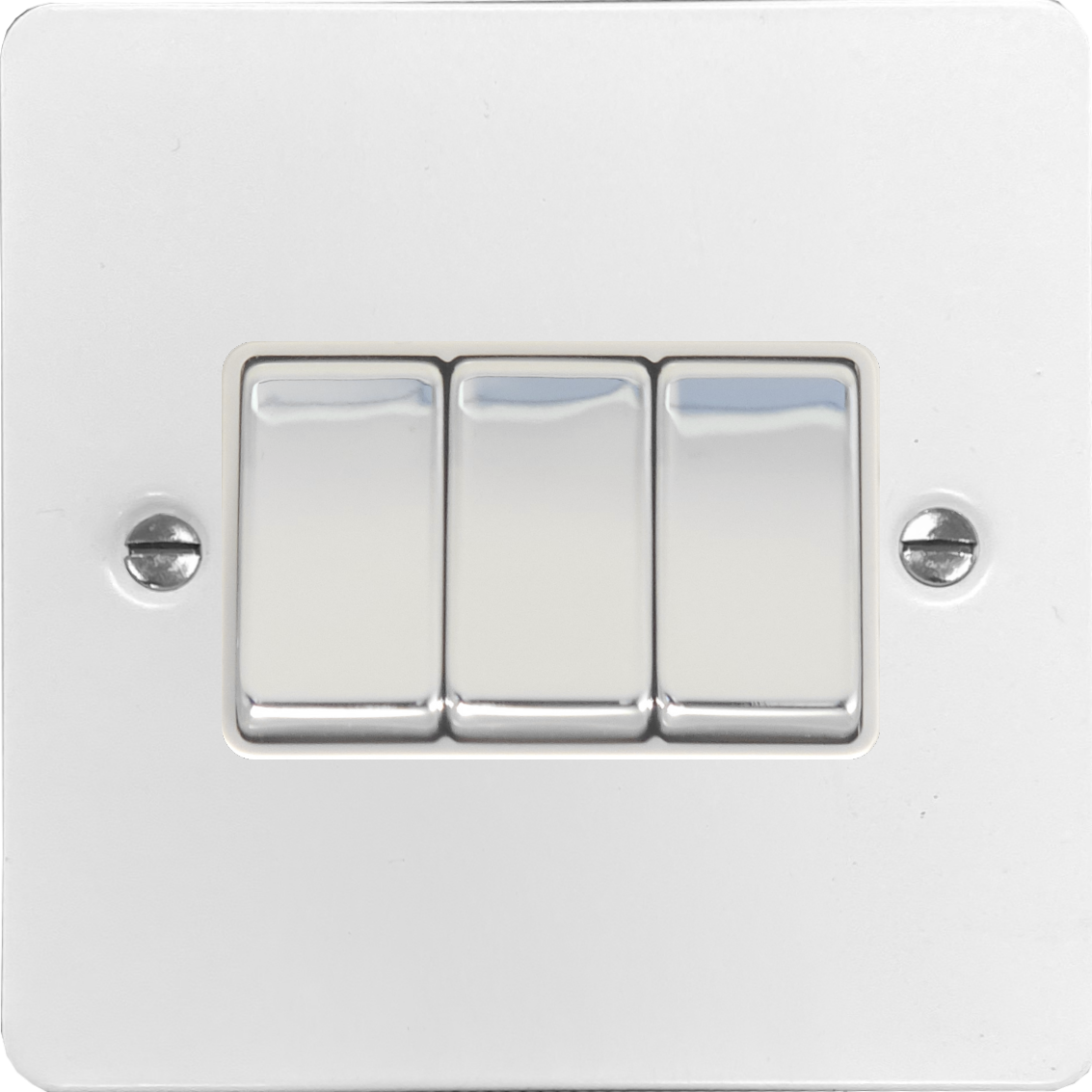 Flat White Light Switch (3 Gang/Chrome Switches) - G+H FW203-PC