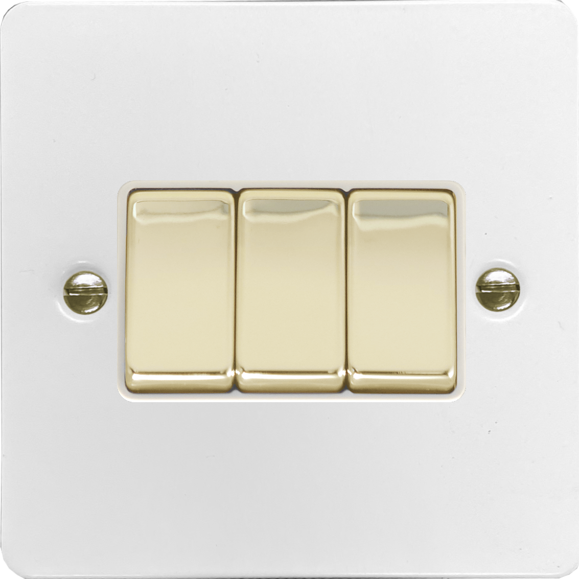 Flat White Light Switch (3 Gang/Polished Brass Switches) - G+H _CARTON1