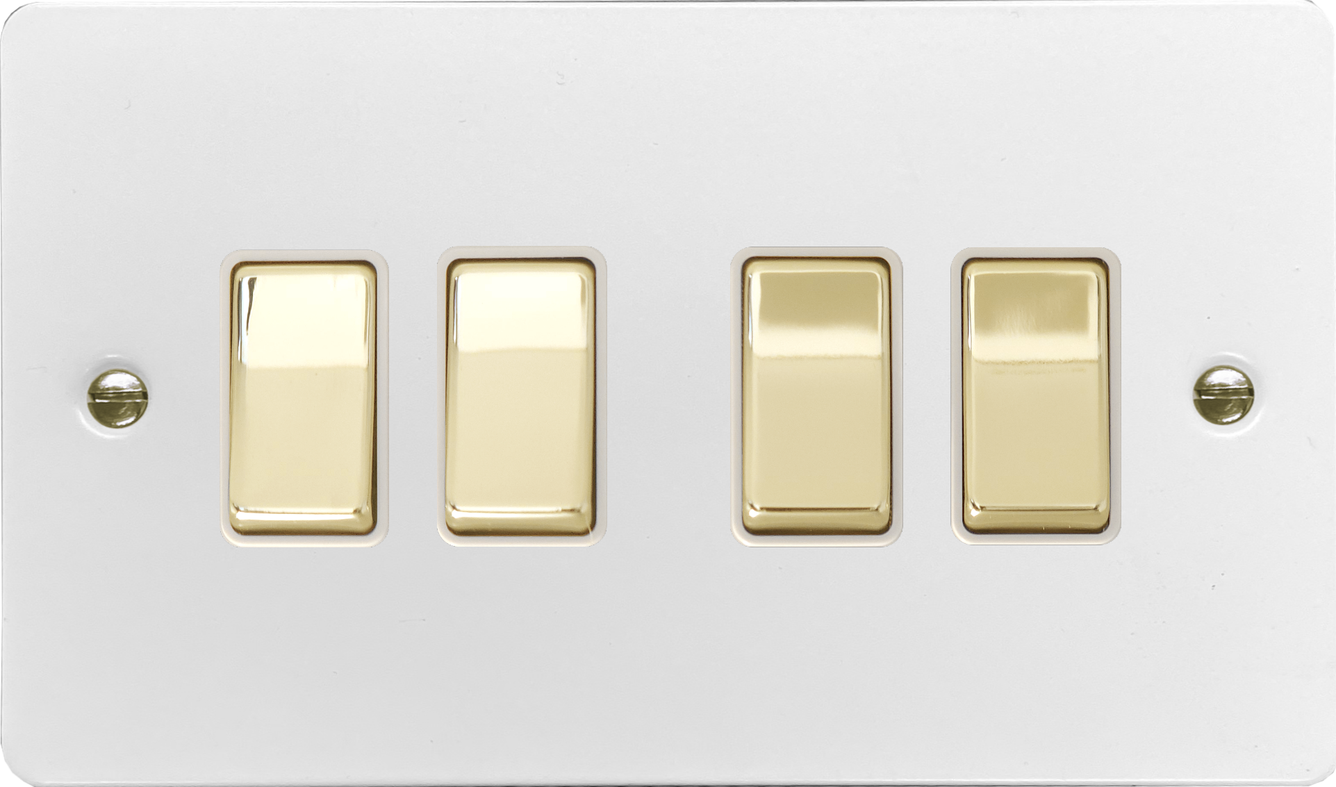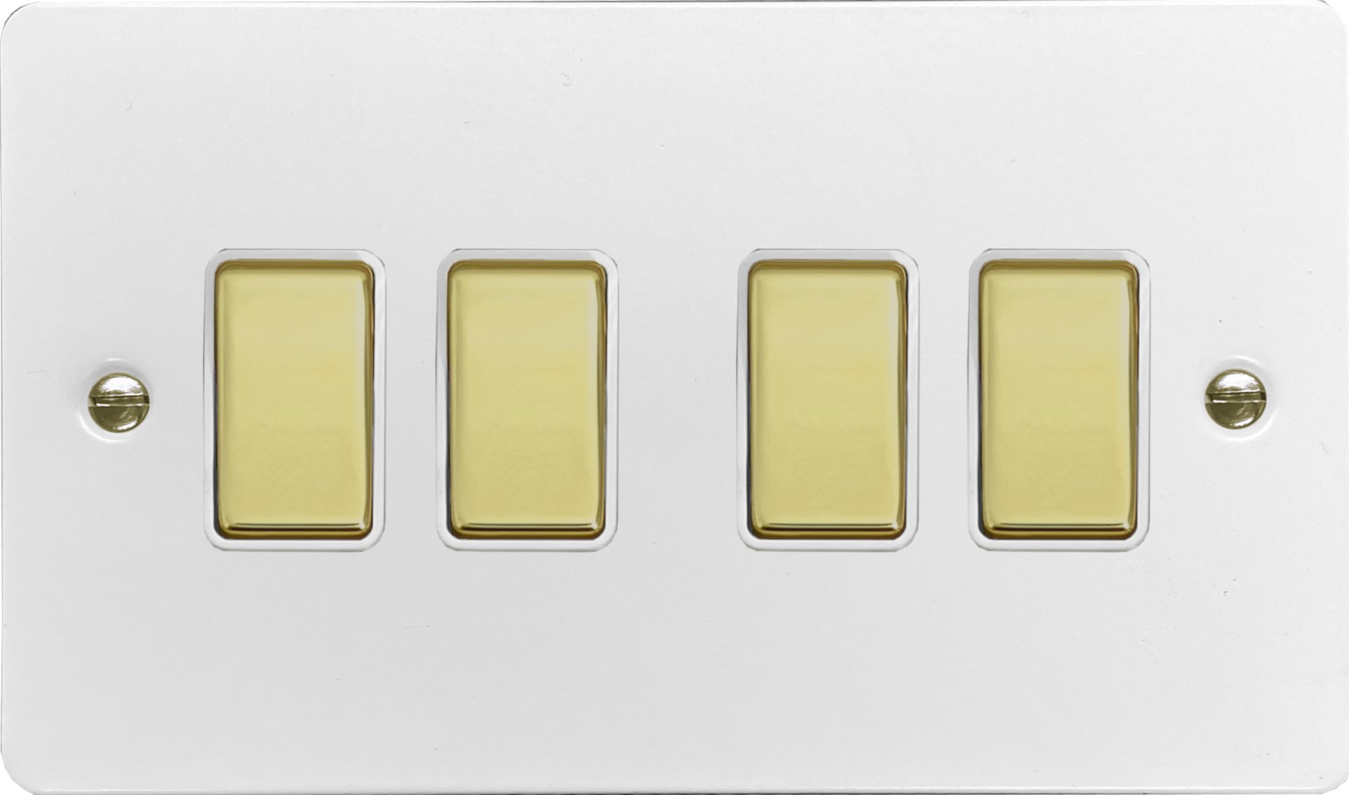 Flat White Light Switch (4 Gang/Polished Brass Switches) - G+H _RIVET65C