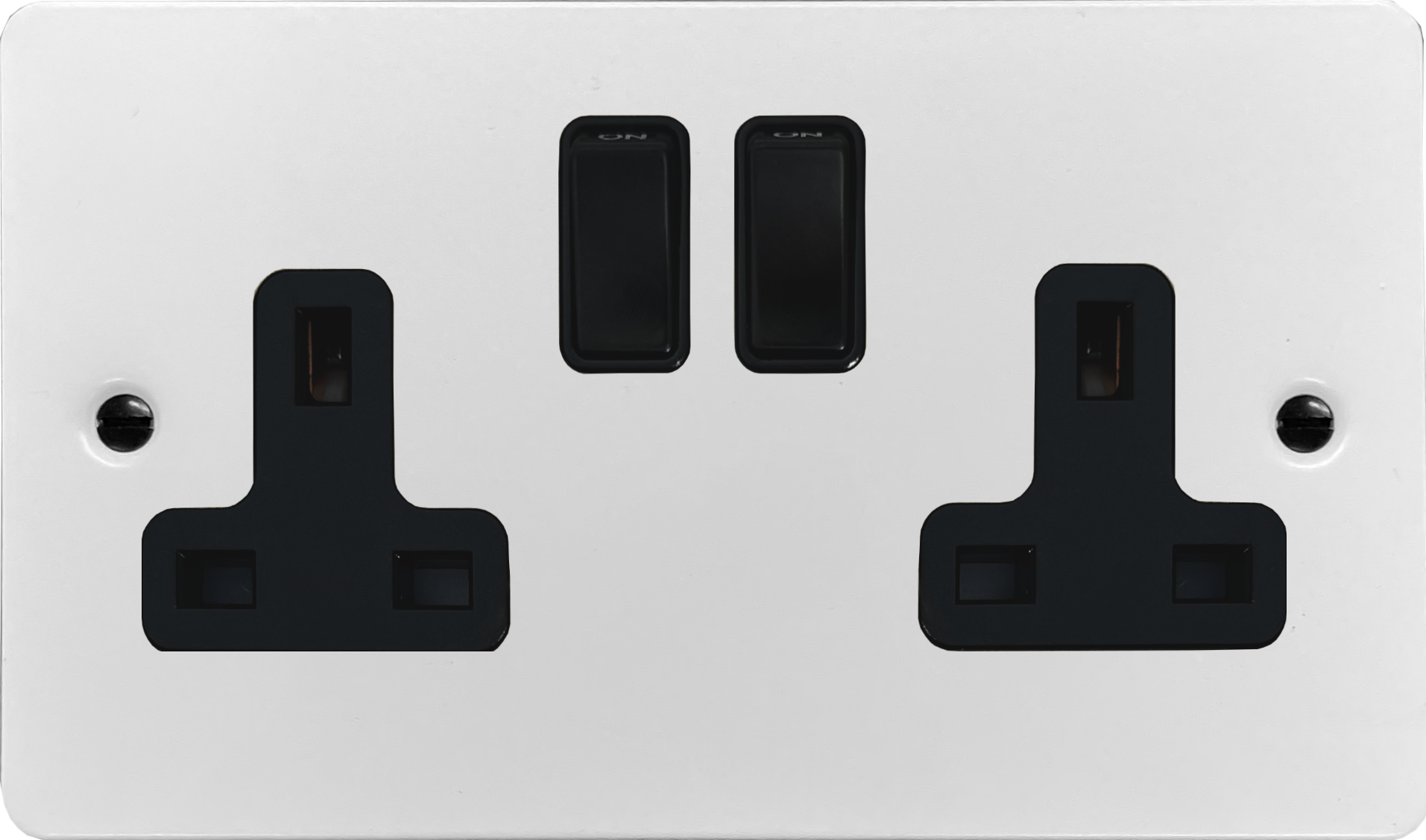 Flat White Socket (Double Socket/Black Switch) - G+H _FW410