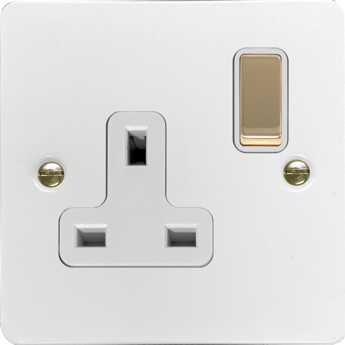 Flat White Socket (Single Socket/Polished Brass Switch) - G+H _FW9