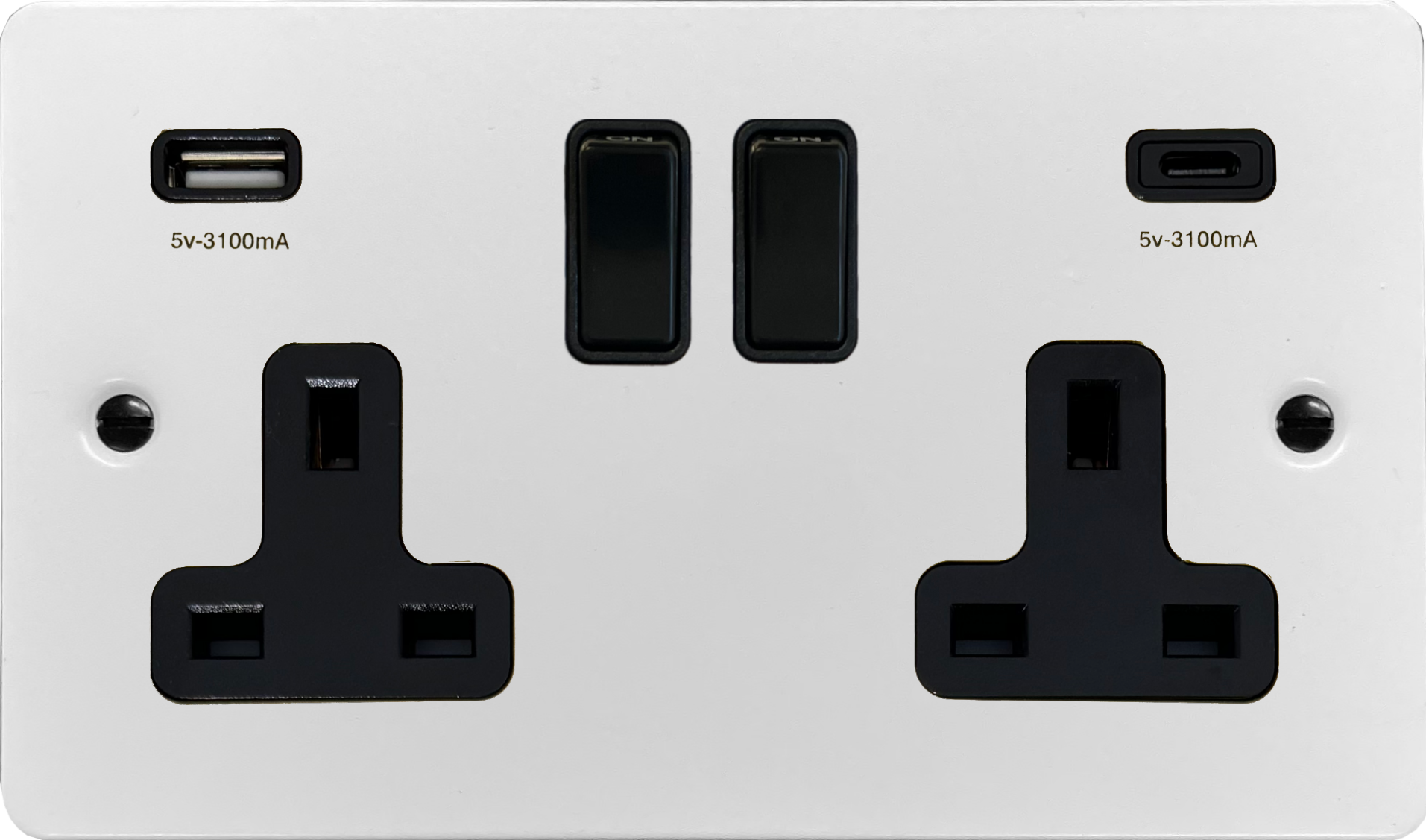 Flat White Socket with USB (USB-A and USB-C/Black Switch) - G+H _FW910