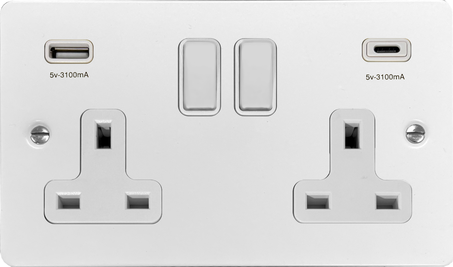 Flat White Socket with USB (USB-A and USB-C/White Switches) - G+H _FW910