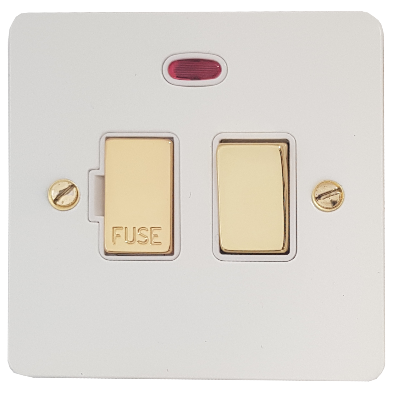 Flat White Switched Fused Spur (Neon/Polished Brass Switch) - G+H FW227-PB