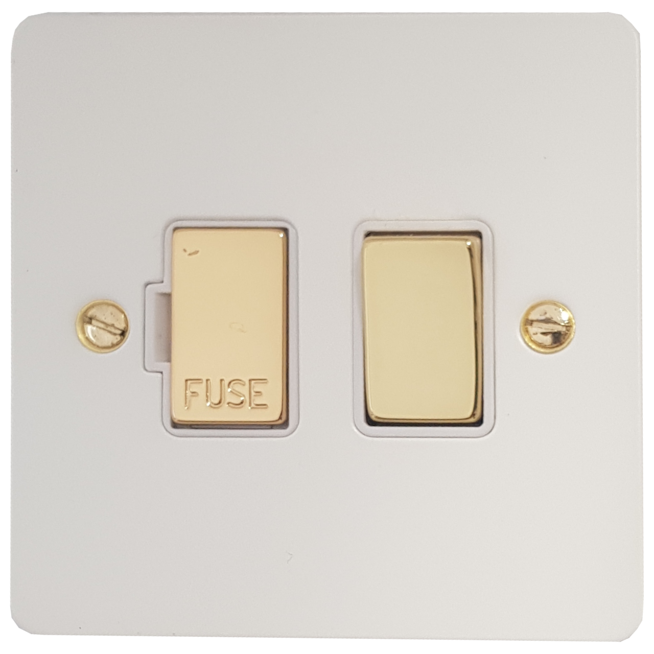 Flat White Switched Fused Spur (No Neon/White Insert/Polished Brass Switch) - G+H FW257-PB