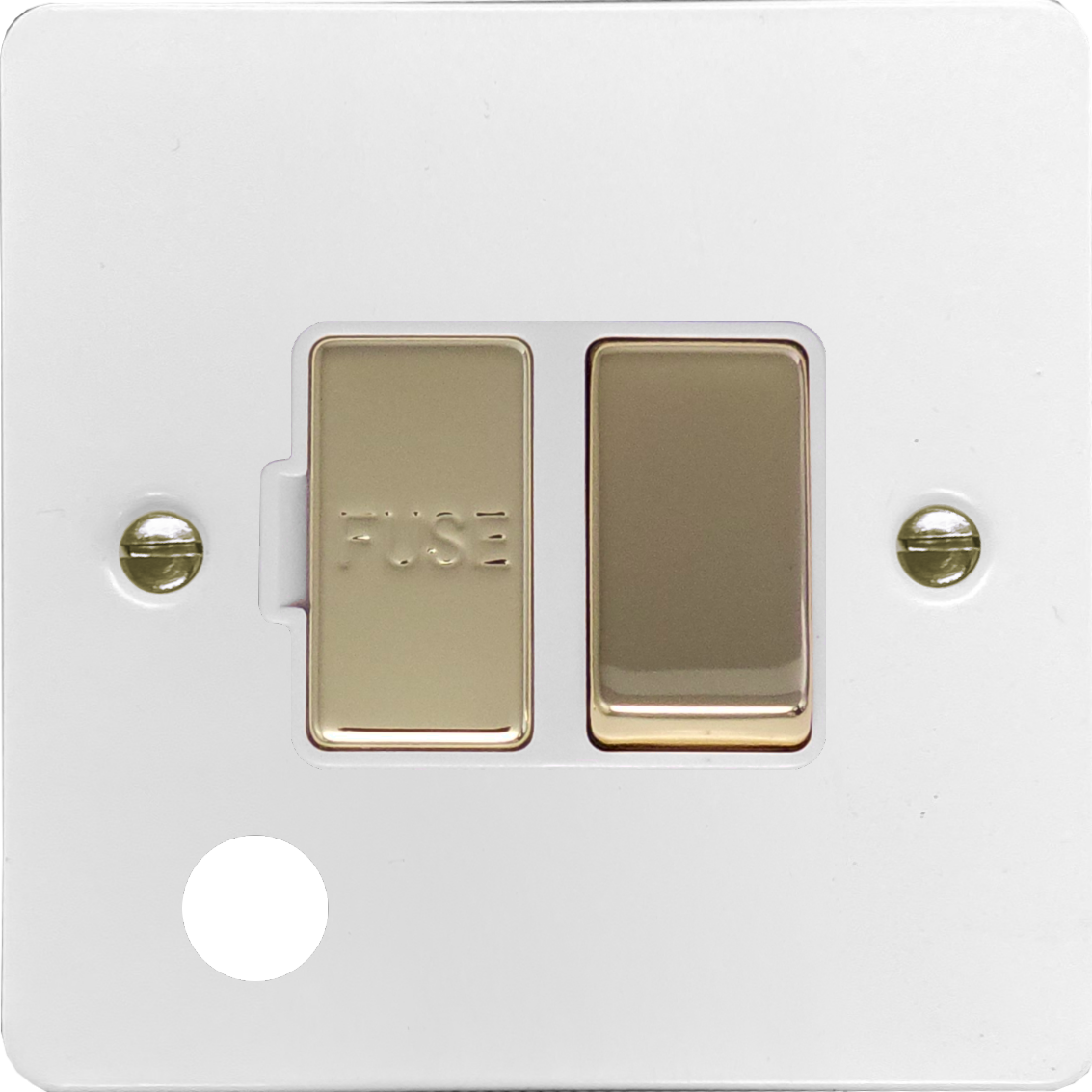 Flat White Switched Fused Spur (Spur Outlet/No Neon/Polished Brass Switch) - G+H FW256-PB