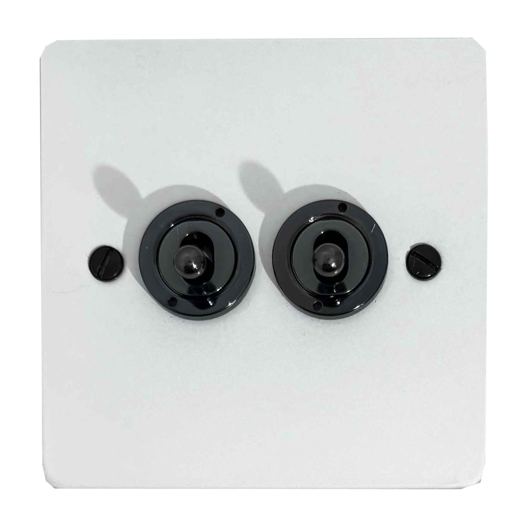 Flat White Toggle Switch (2 Gang/Black Switch)