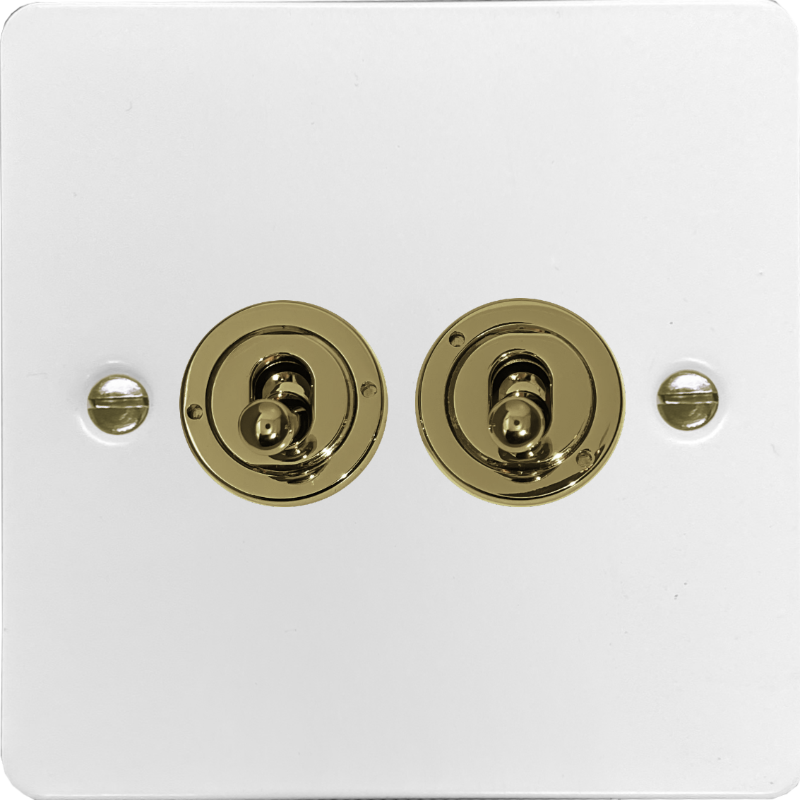 Flat White Toggle Switch (2 Gang/Polished Brass Switches) - G+H FW382-PB