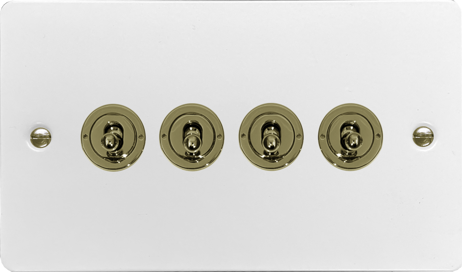 Flat White Toggle Switch (4 Gang/Polished Brass Switches) - G+H FW384-PB