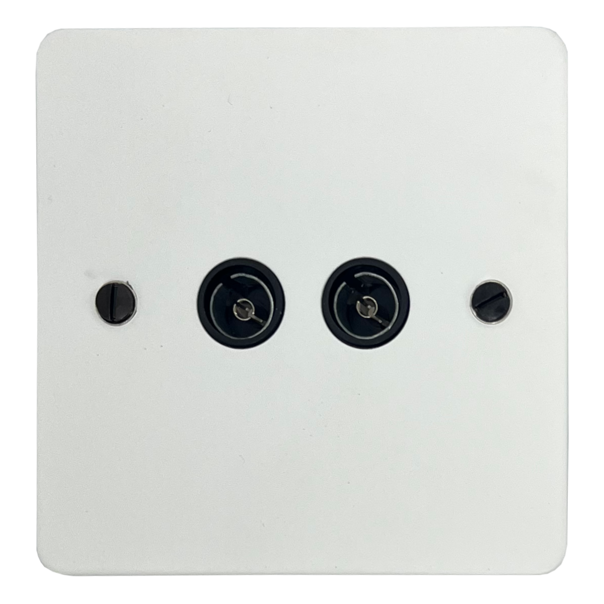 Flat White TV Socket (2 Gang/Black Insert) - G+H FW36B