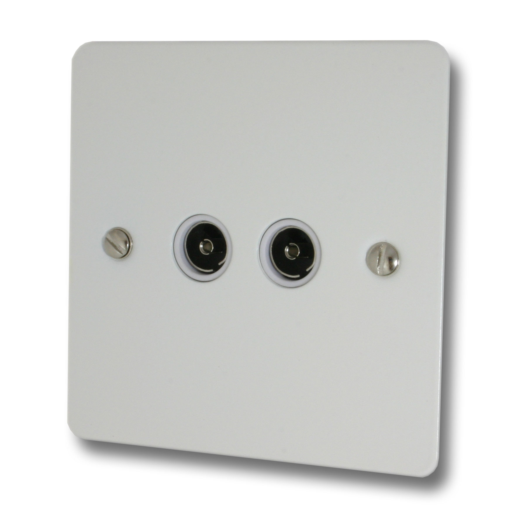 Flat White TV Socket (2 Gang/White Surround) - G+H FW36W