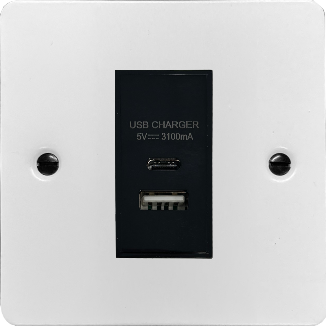 Flat White (USB-A and USB-C) (Black Insert/1 Gang) - G+H FW41B
