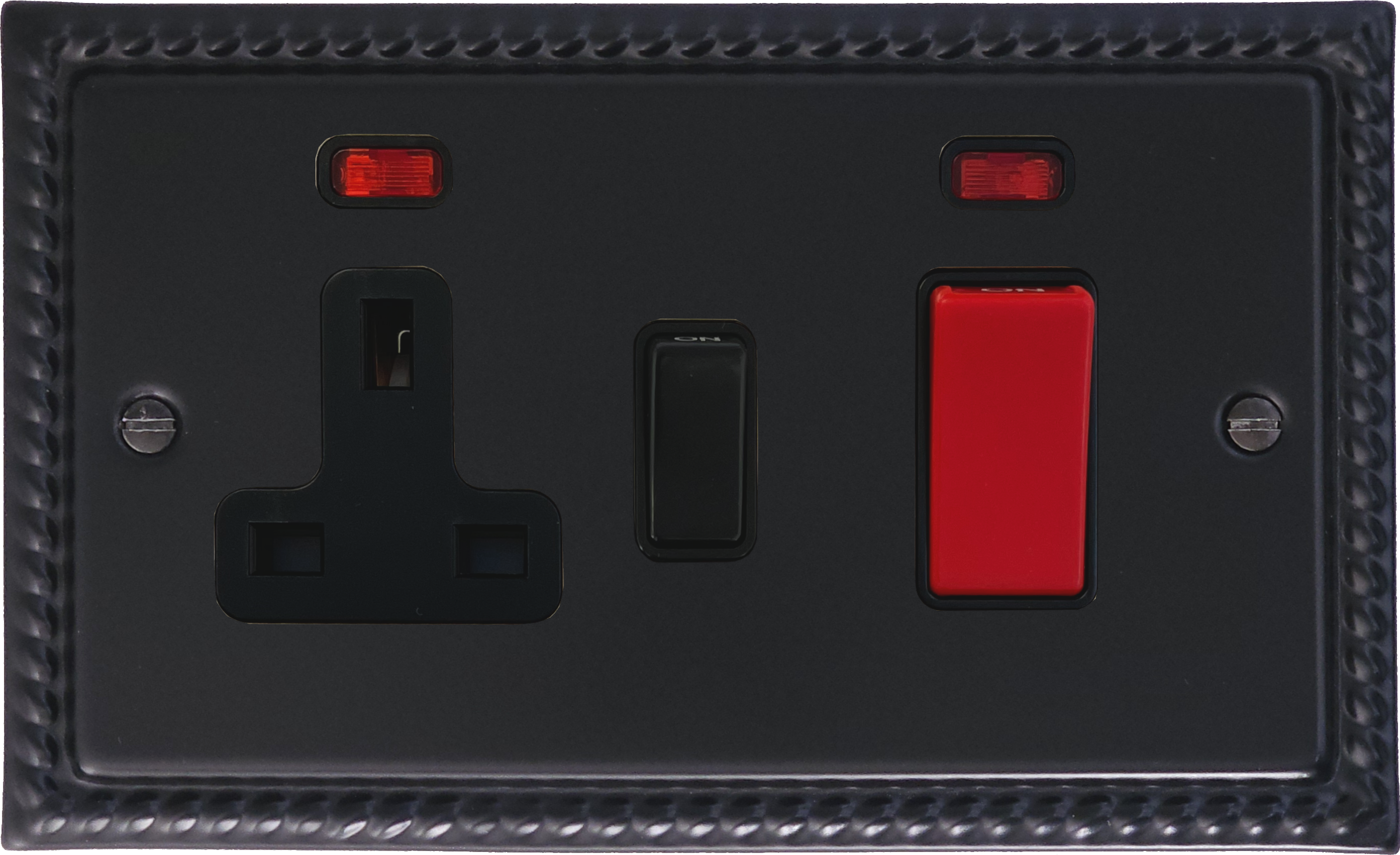 Georgian Black Cooker Switch with Socket (Black Switch) - G+H MFB29B