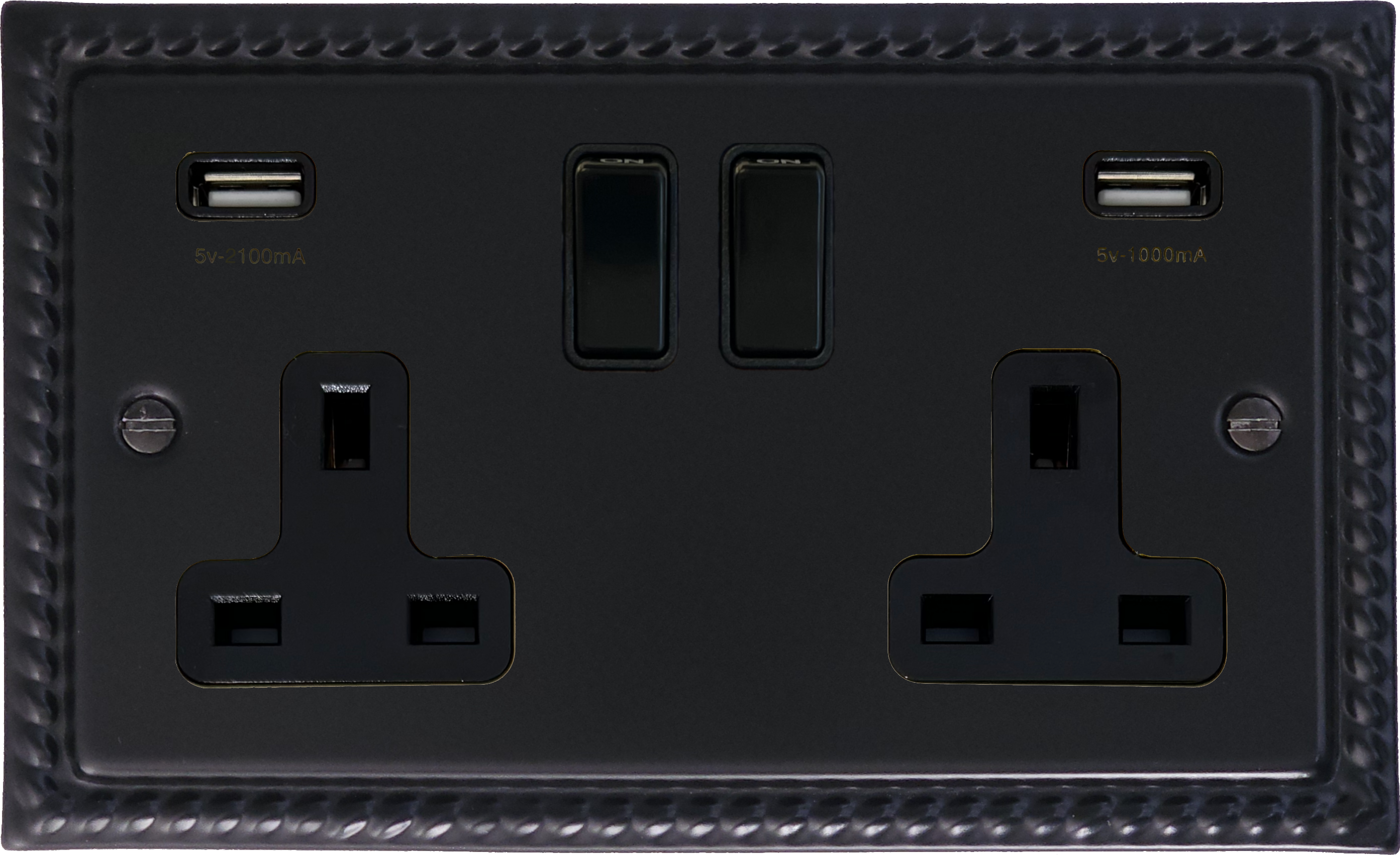 Georgian Black Double Socket with USB (Black Switches) - G+H MFB910B