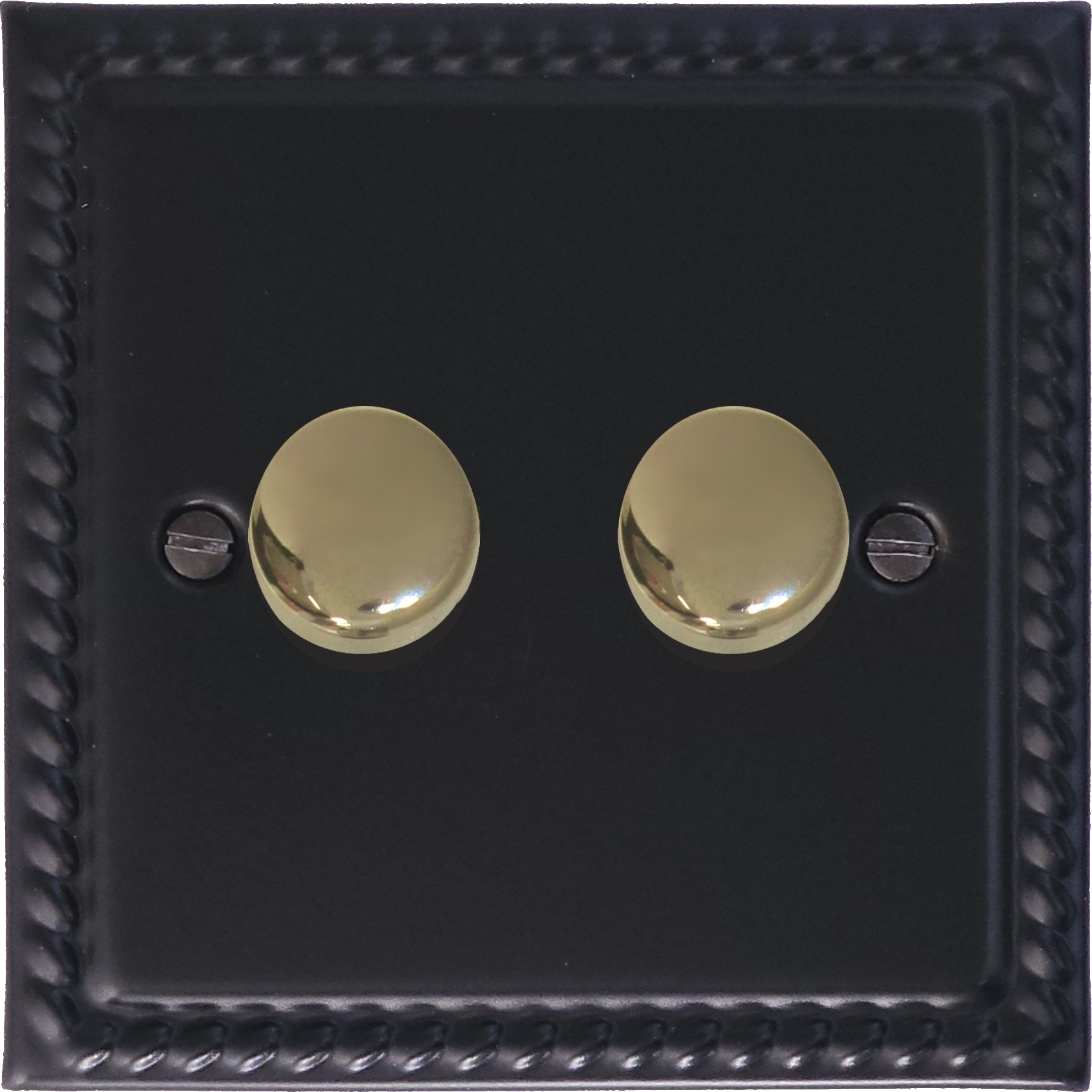 Georgian Black LED Dimmer (2 Gang/Brass Caps) - G+H MFB522-PB