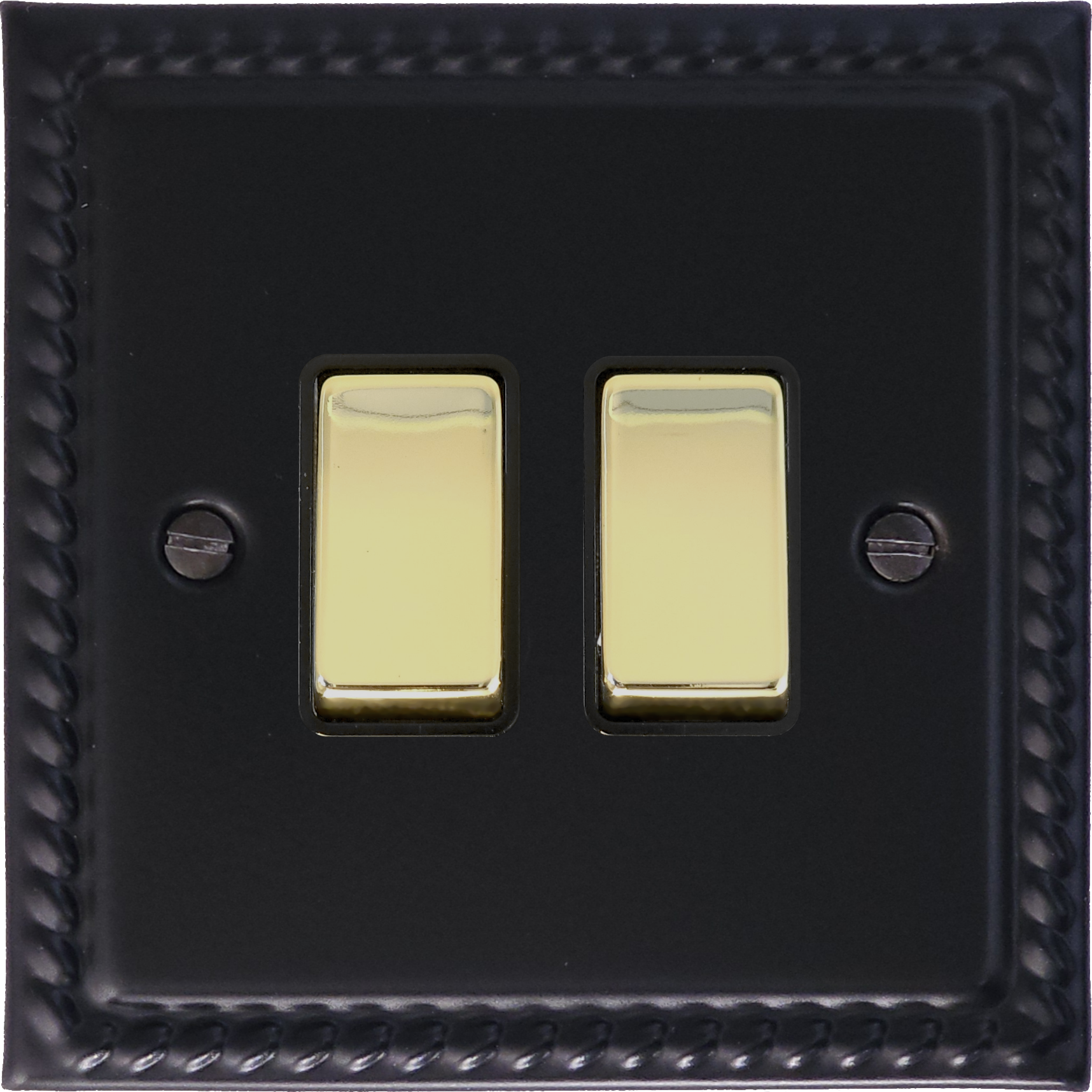 Georgian Black Light Switch (2 Gang/Black Insert/Polished Brass Switches) - G+H MFB302-PB