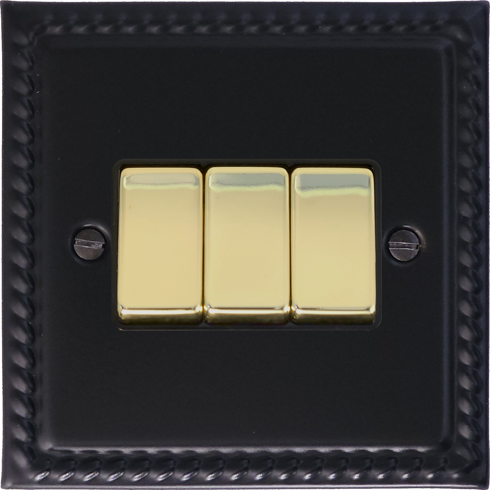 Georgian Black Light Switch (3 Gang/Black Insert/Polished Brass Switches) - G+H MFB303-PB