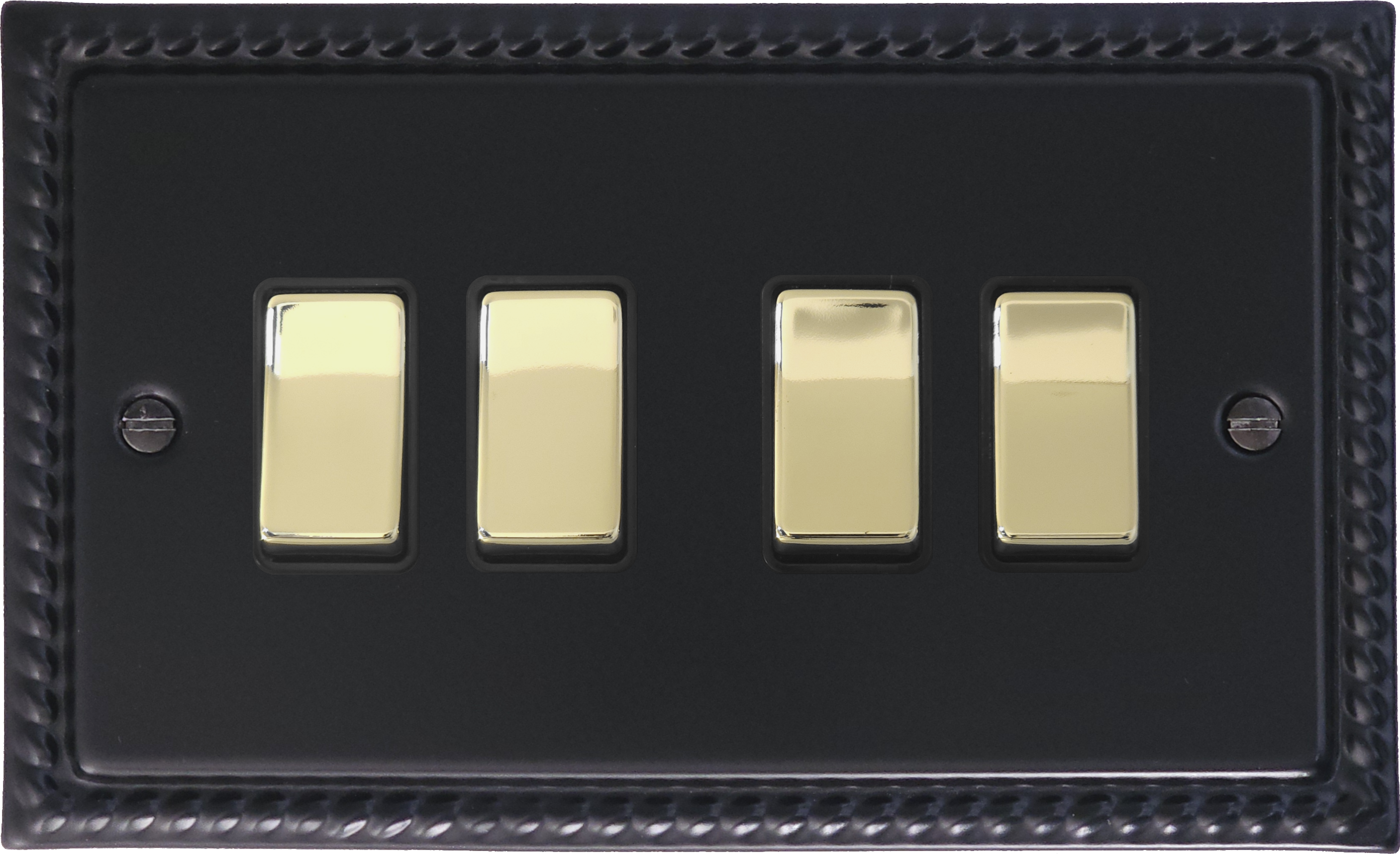 Georgian Black Light Switch (4 Gang/Black Insert/ Polished Brass Switches)