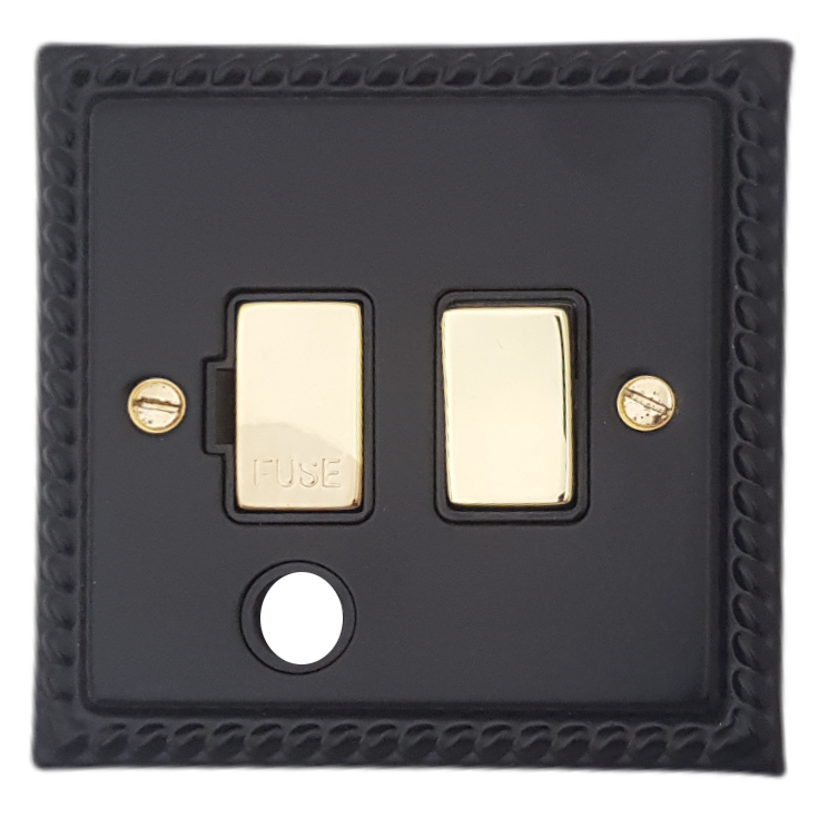 Georgian Black Switched Fused Spur with Flex Outlet (Black Insert/Polished Brass Switch)