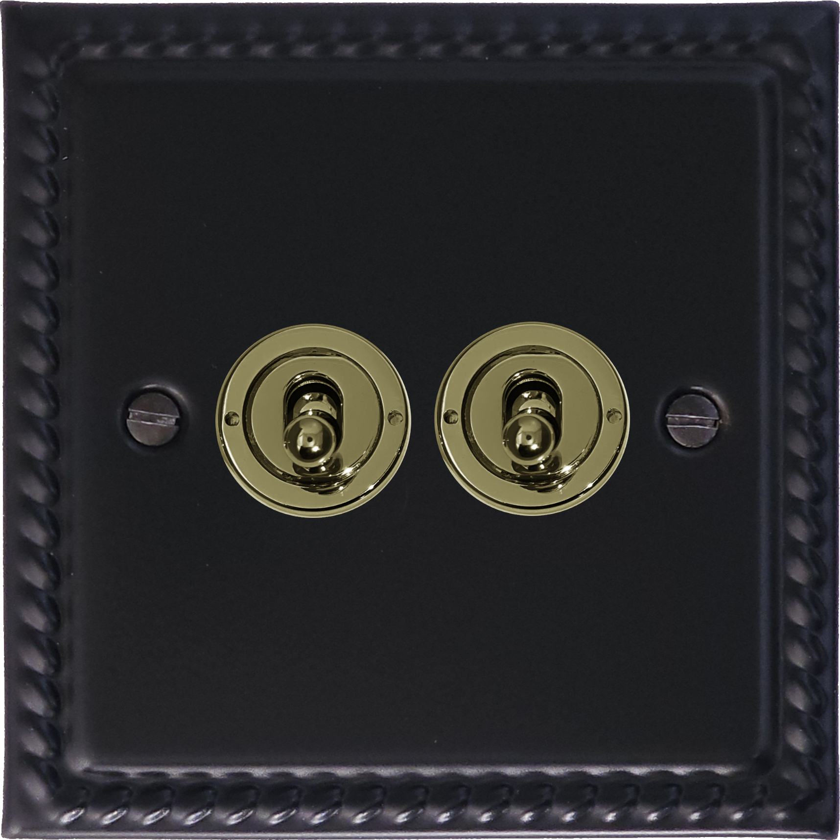 Georgian Black Toggle Switch (2 Gang/Polished Brass Switches) - G+H MFB382-PB