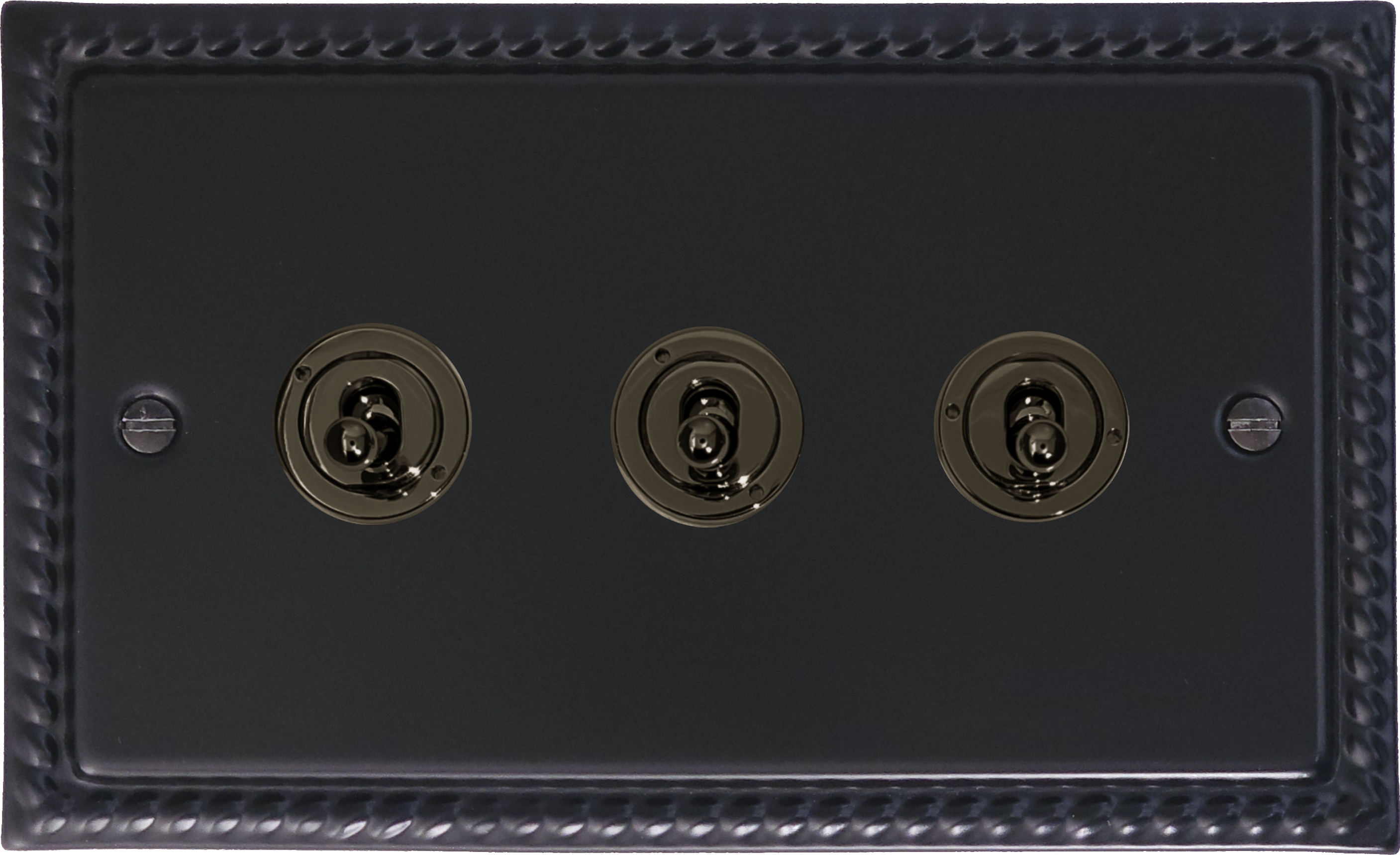 Georgian Black Toggle Switch (3 Gang/Black Nickel Toggle) - G+H MFB383-BN