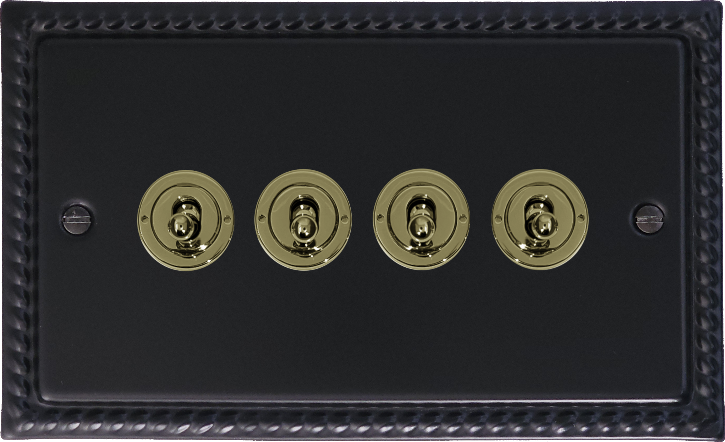 Georgian Black Toggle Switch (4 Gang/Polished Brass Switches) - G+H MFB384-PB