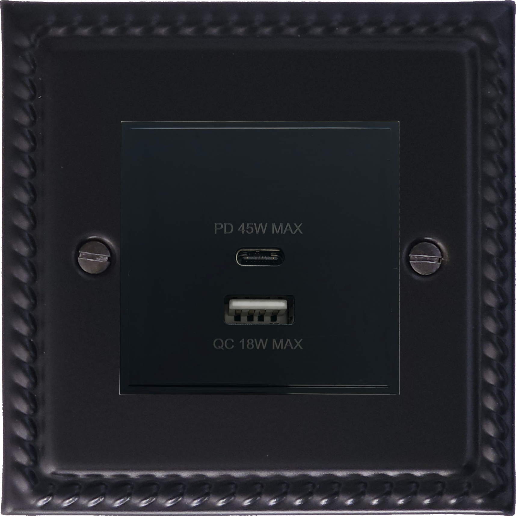 Georgian Black USB Charger (Dual USB A + C Quick Charge) (Black Insert/1 Gang)