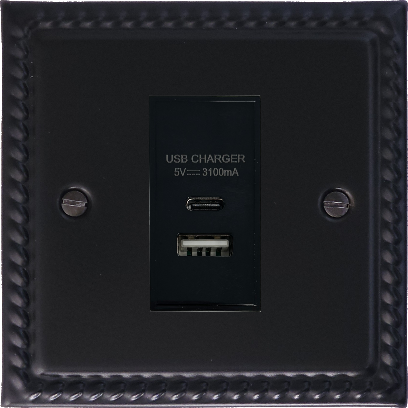 Georgian Black USB Charger (USB-A and USB-C) (Black Insert/1 Gang) - G+H MFB41B